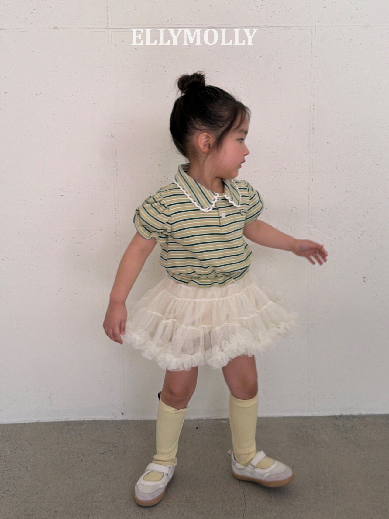 [予約] ELLY MOLLY - curling collar frill T-shirt ( pink / mint / melange )