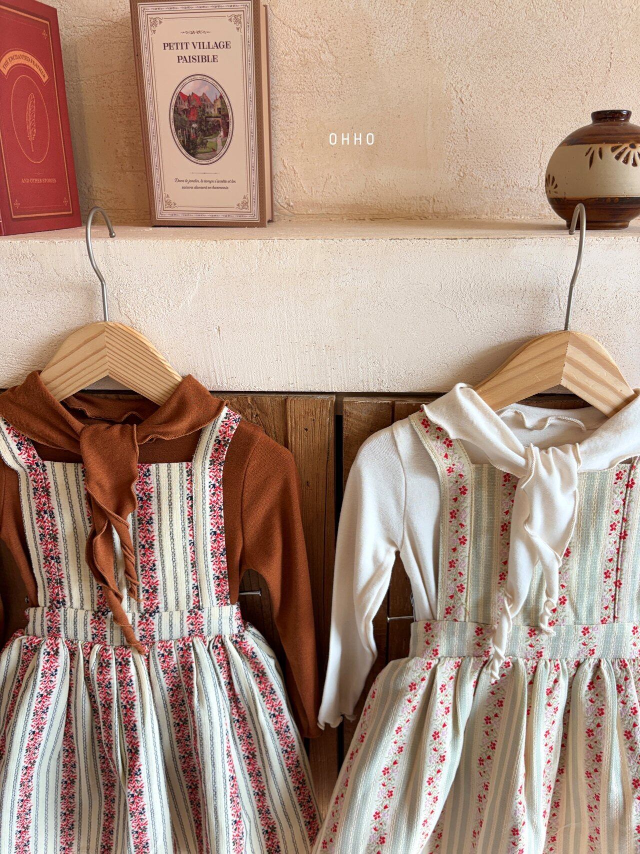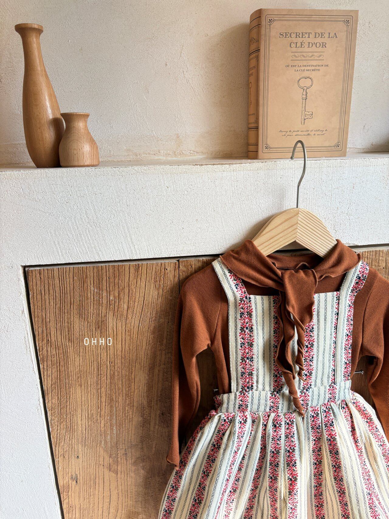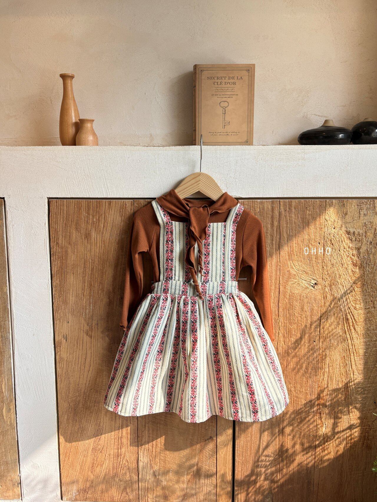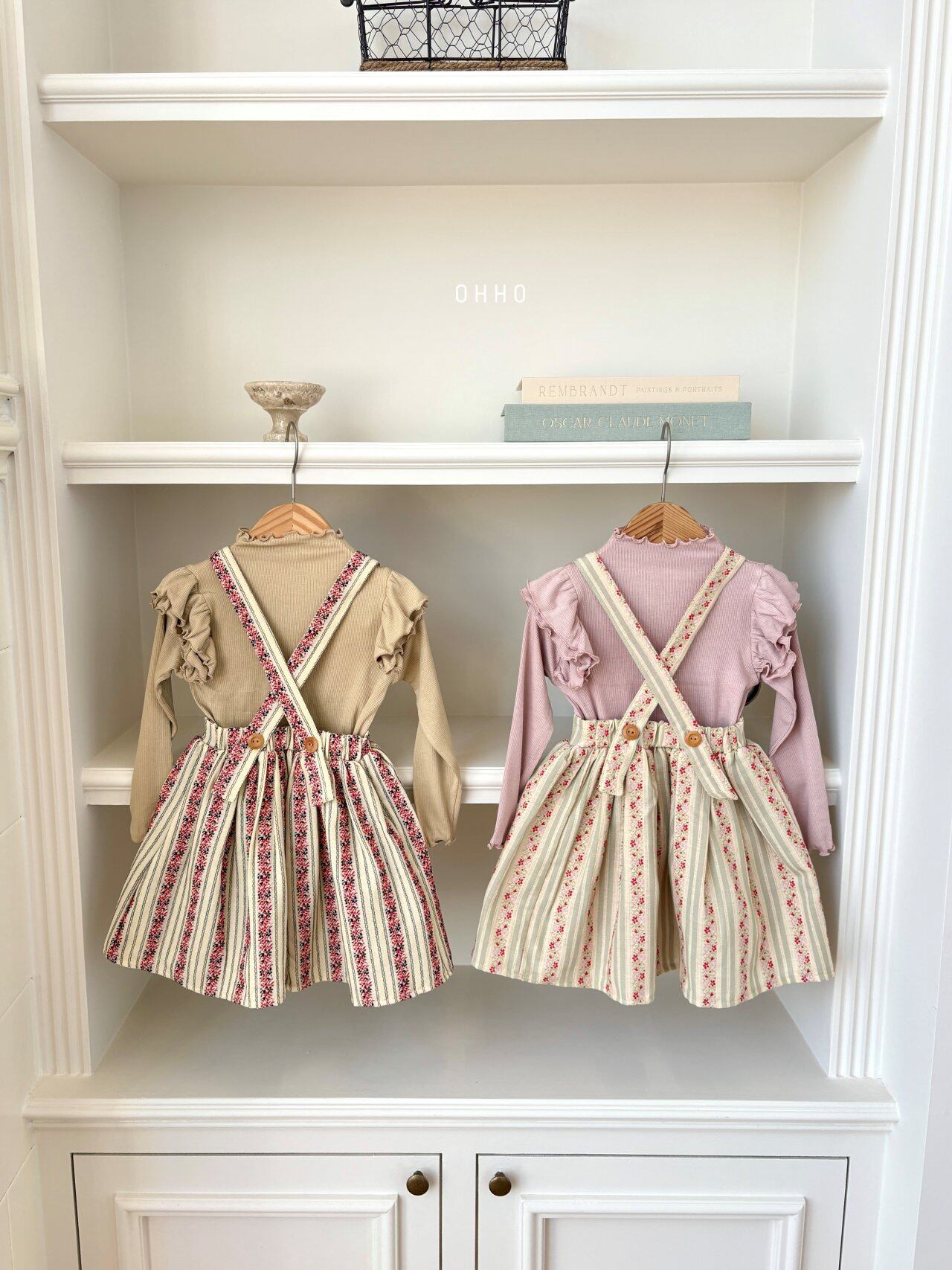 [予約] ohho - Rosy embroidered suspender skirt ( cream×mint / ivory×navy )