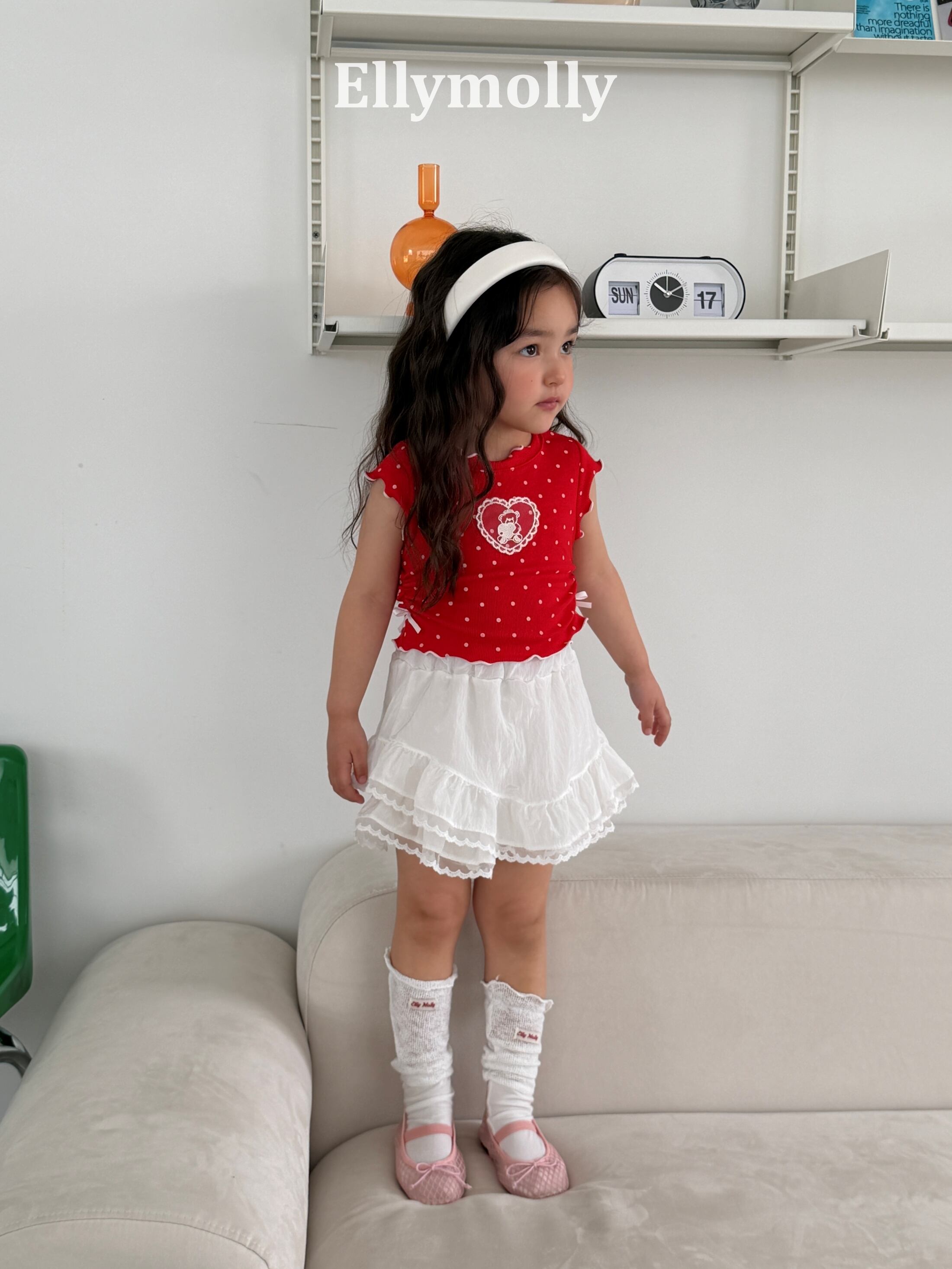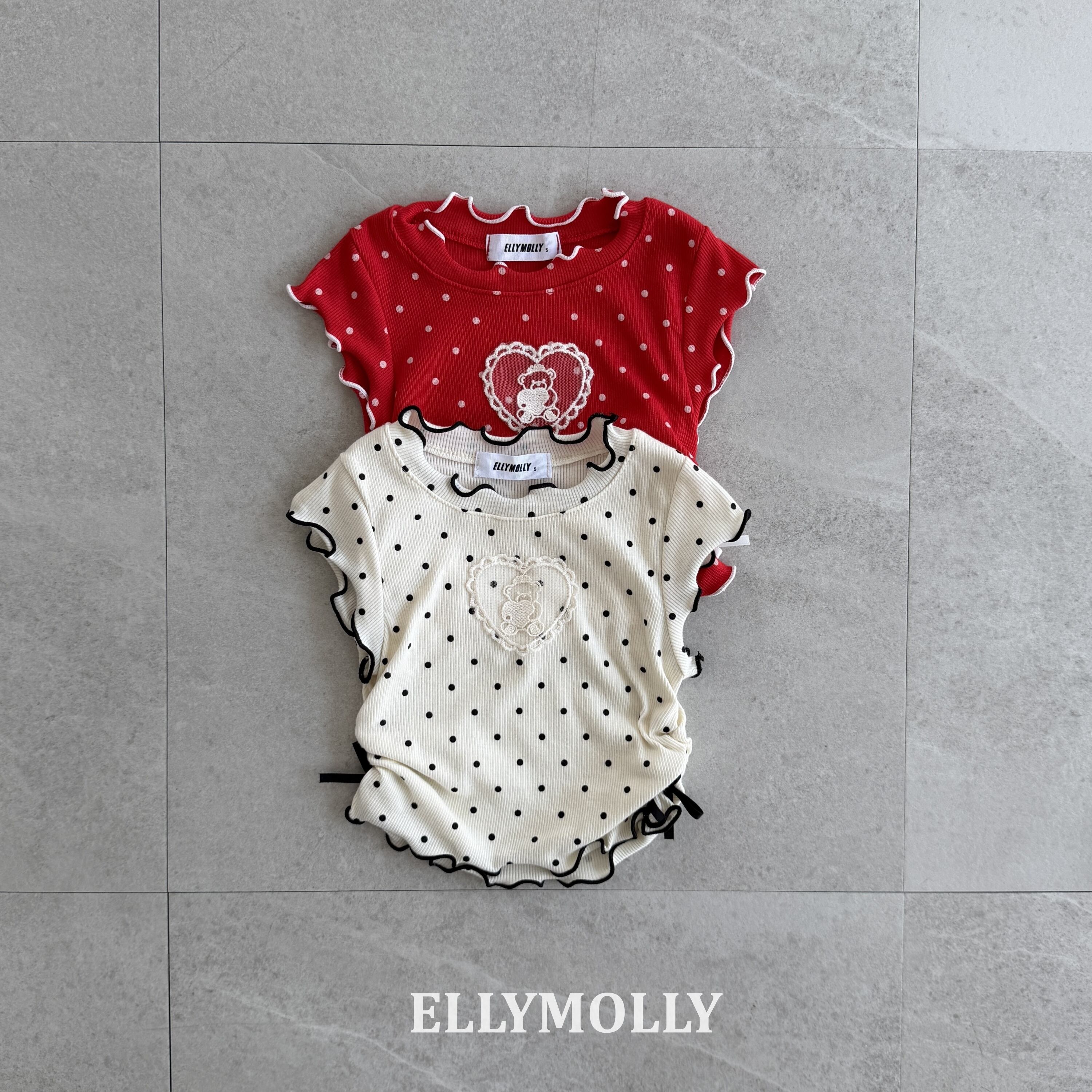 [予約] ELLY MOLLY - dot me shirring T-shirt ( cream / red )