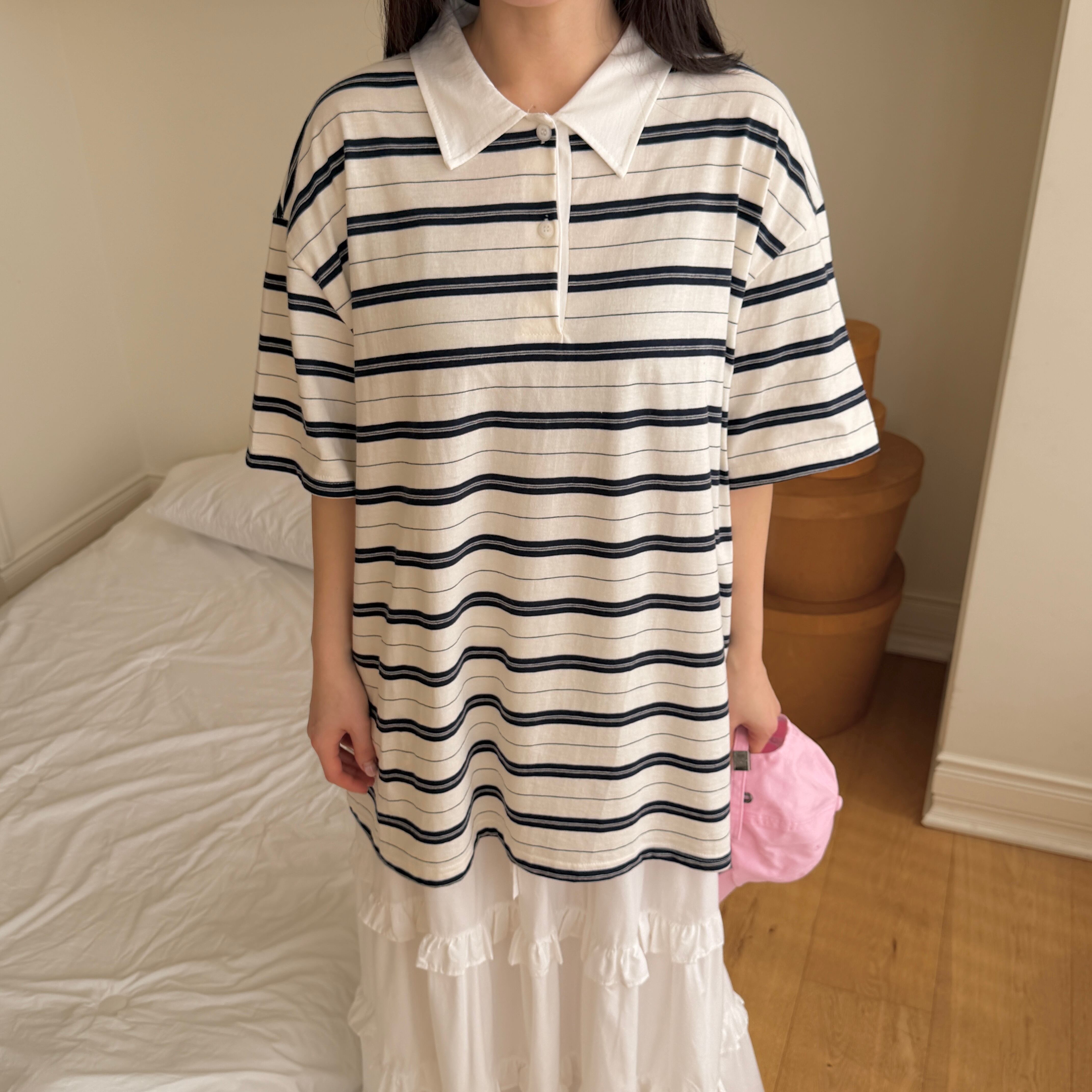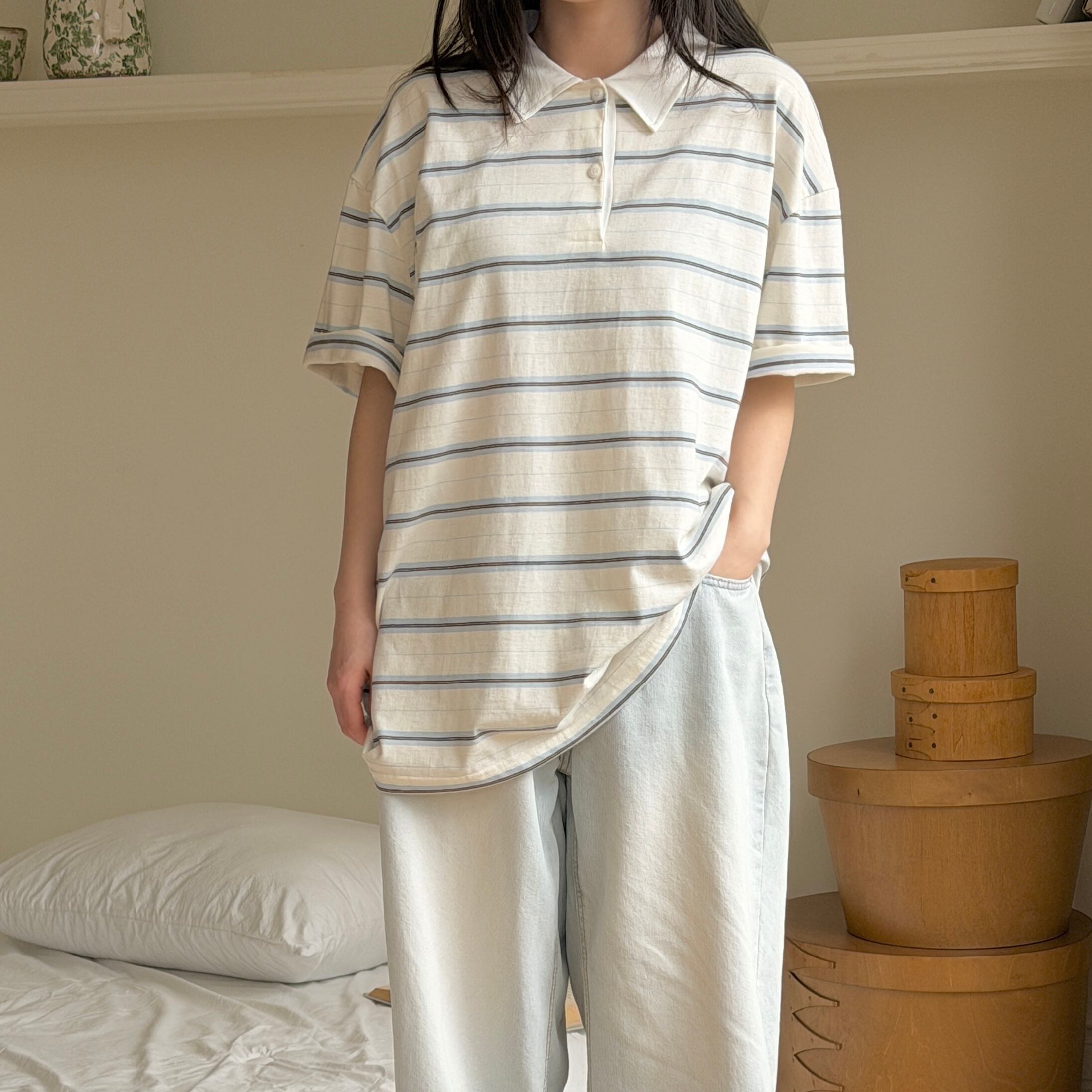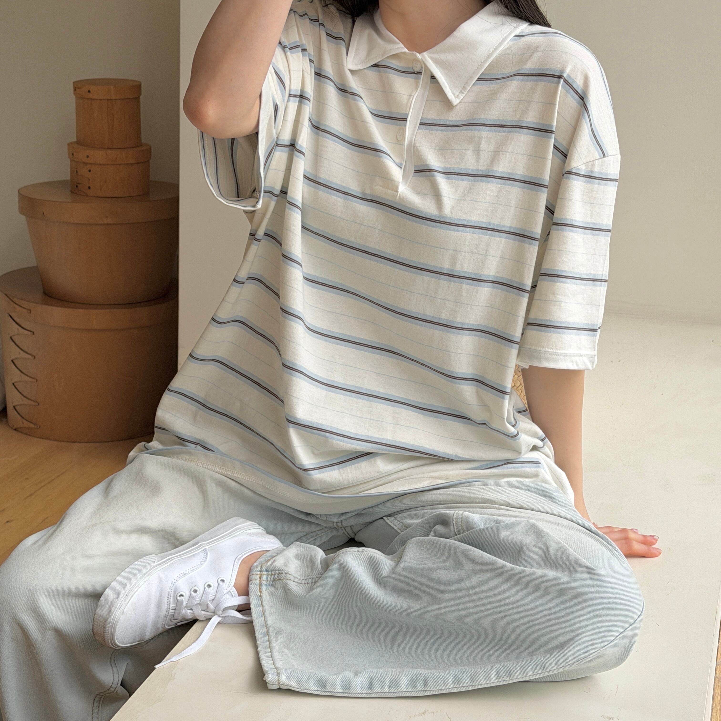 [予約] ninibello - adult pocky polo T-shirt ( sora / navy )
