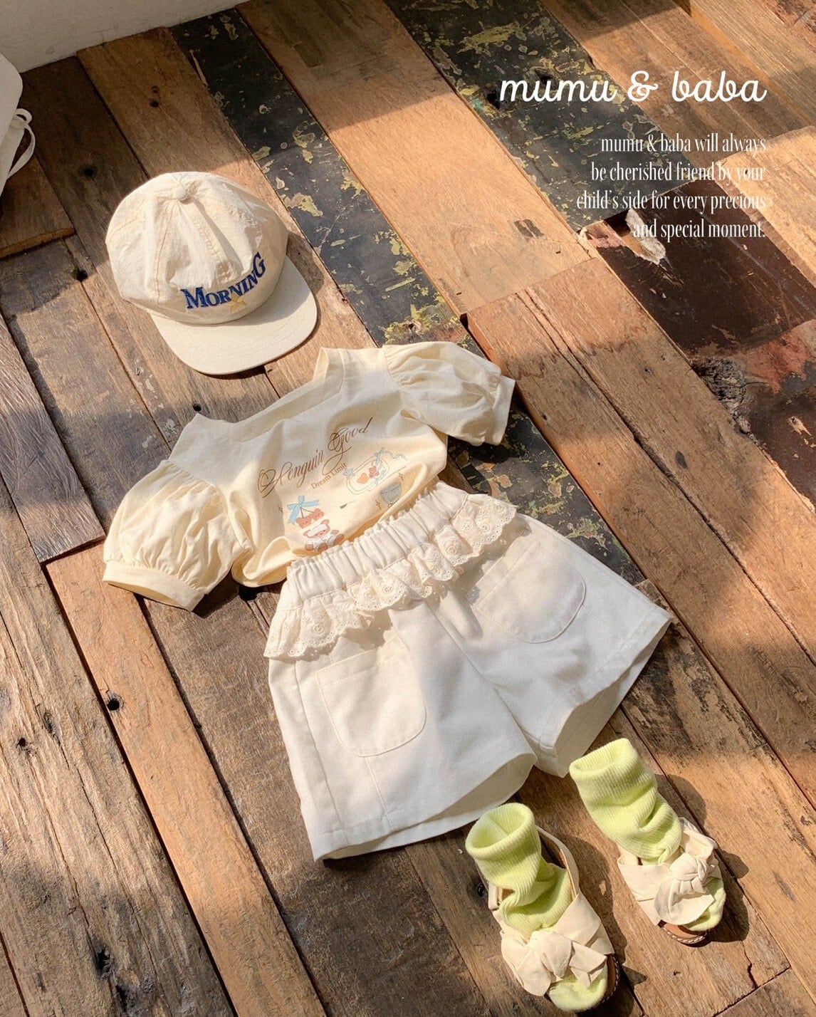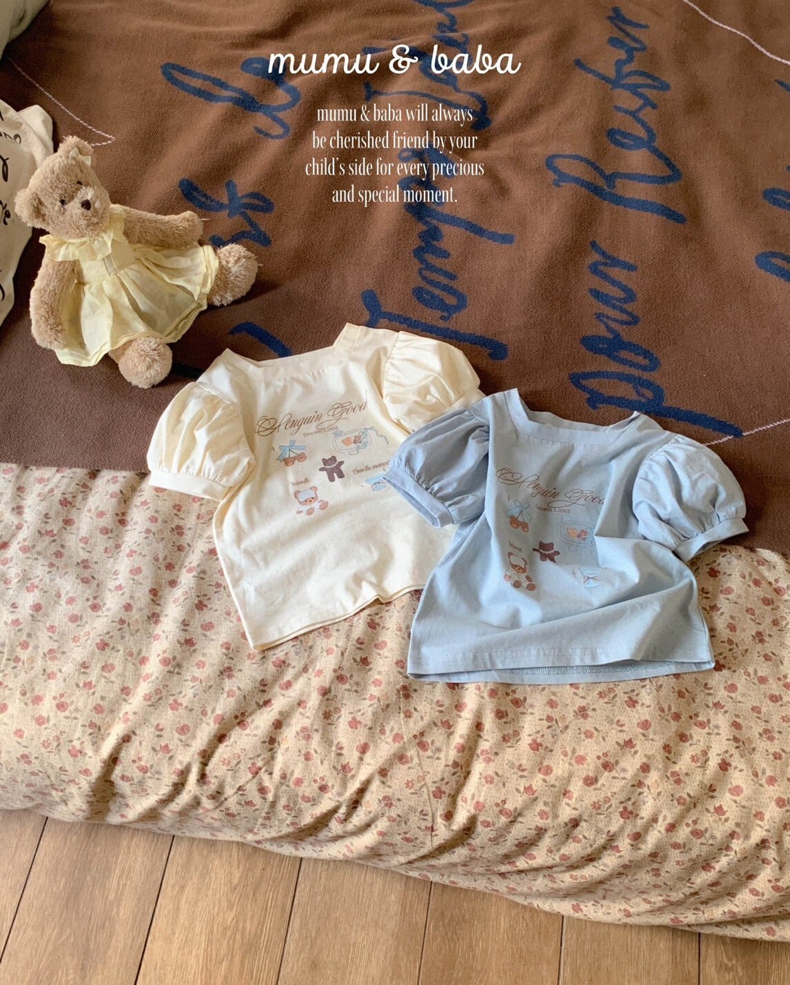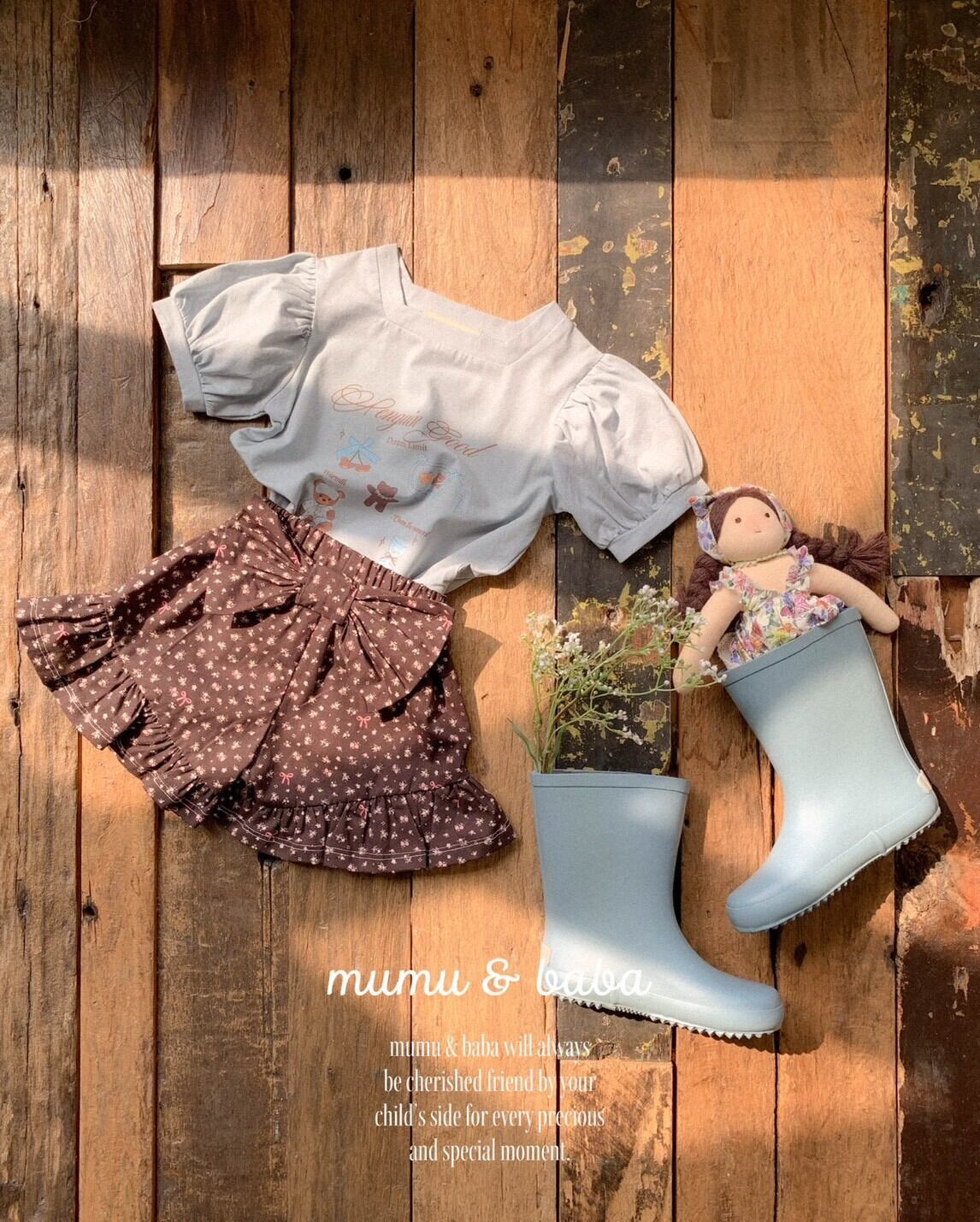 [予約] mumu&baba - pogom T-shirt ( ivory / blue )