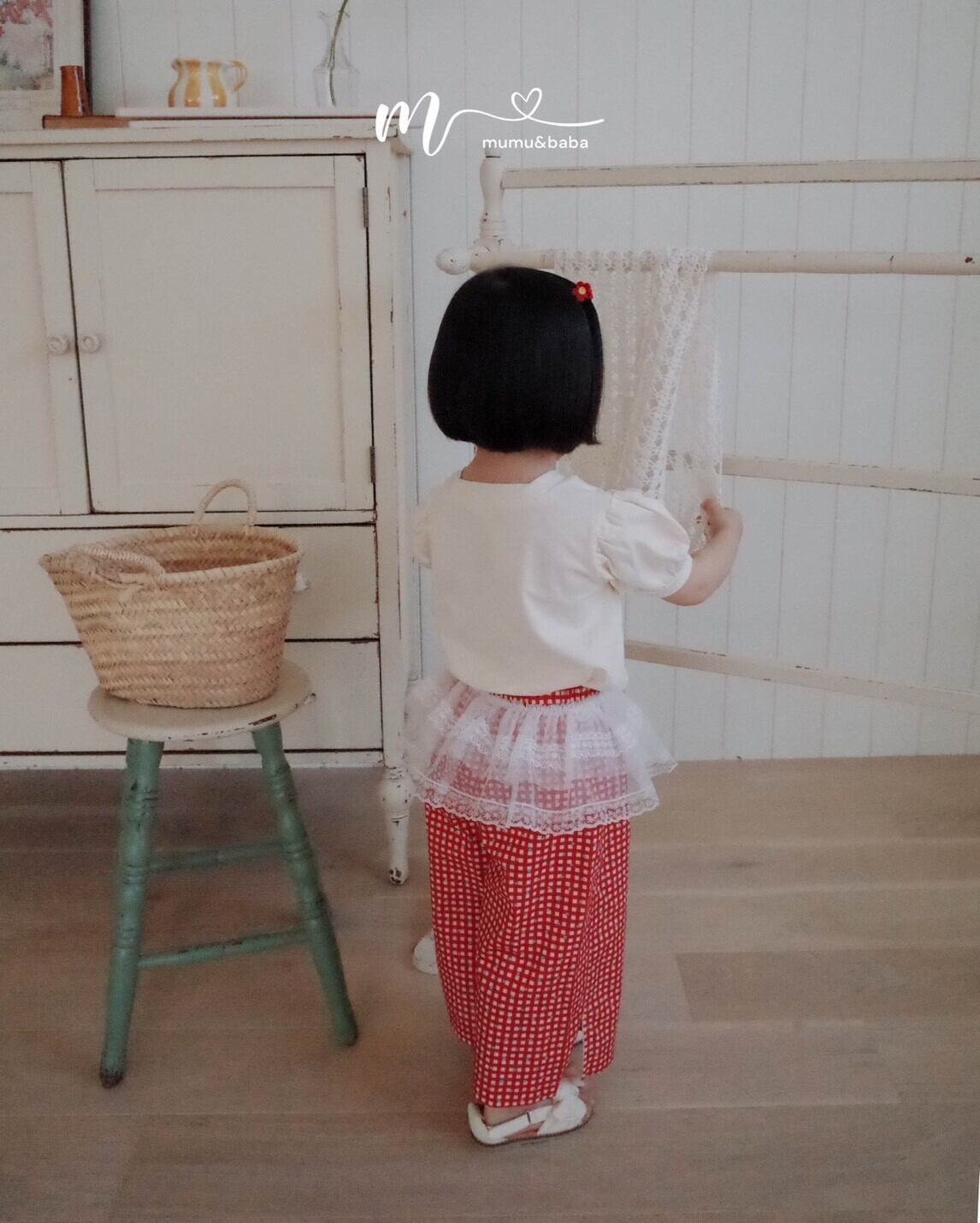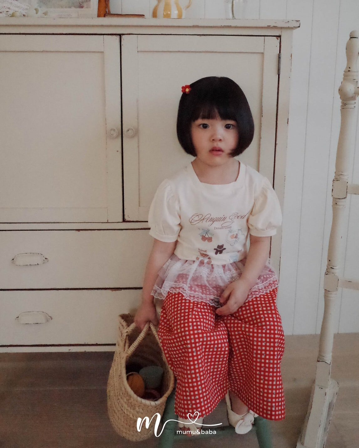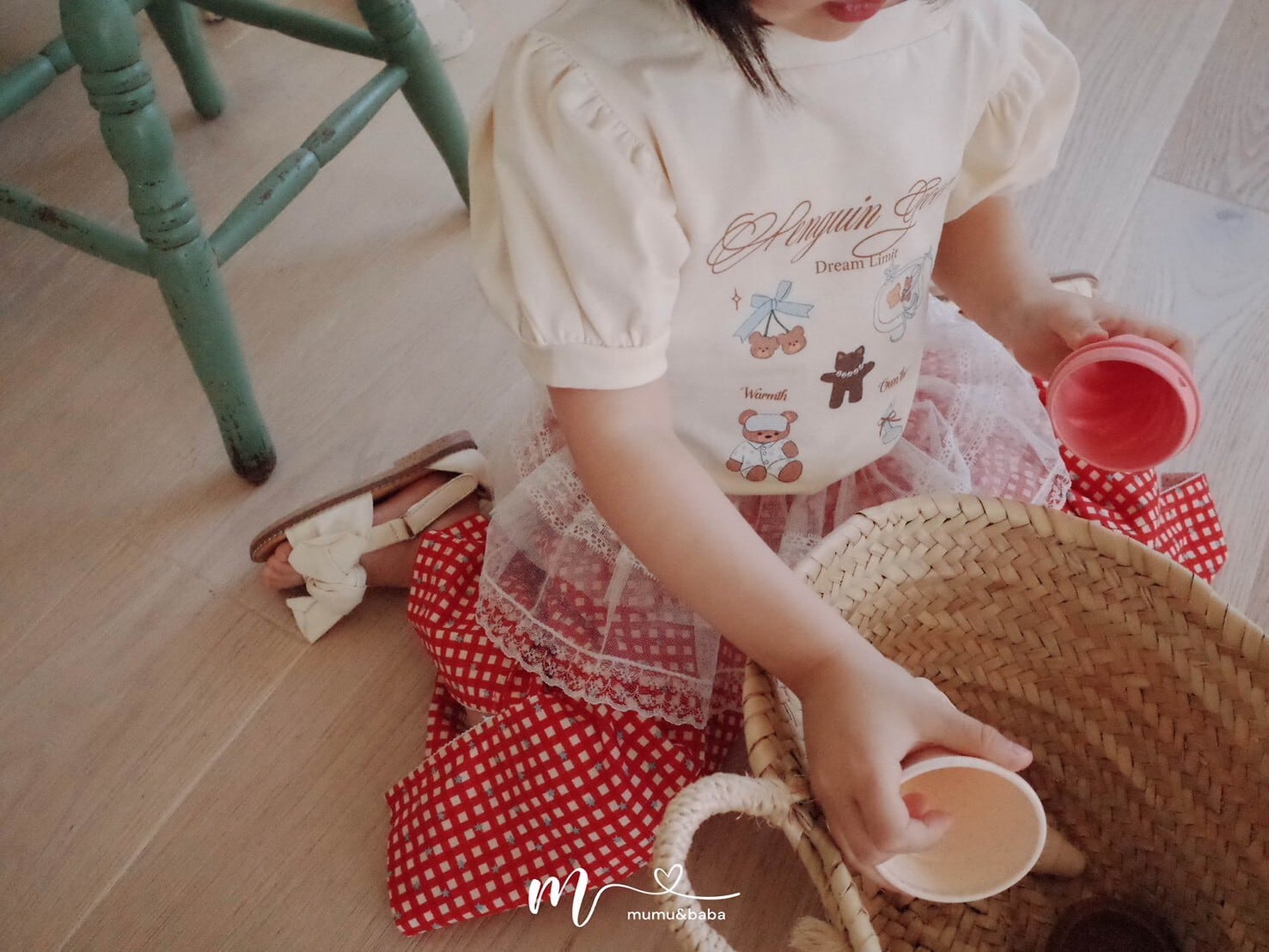 [予約] mumu&baba - pogom T-shirt ( ivory / blue )