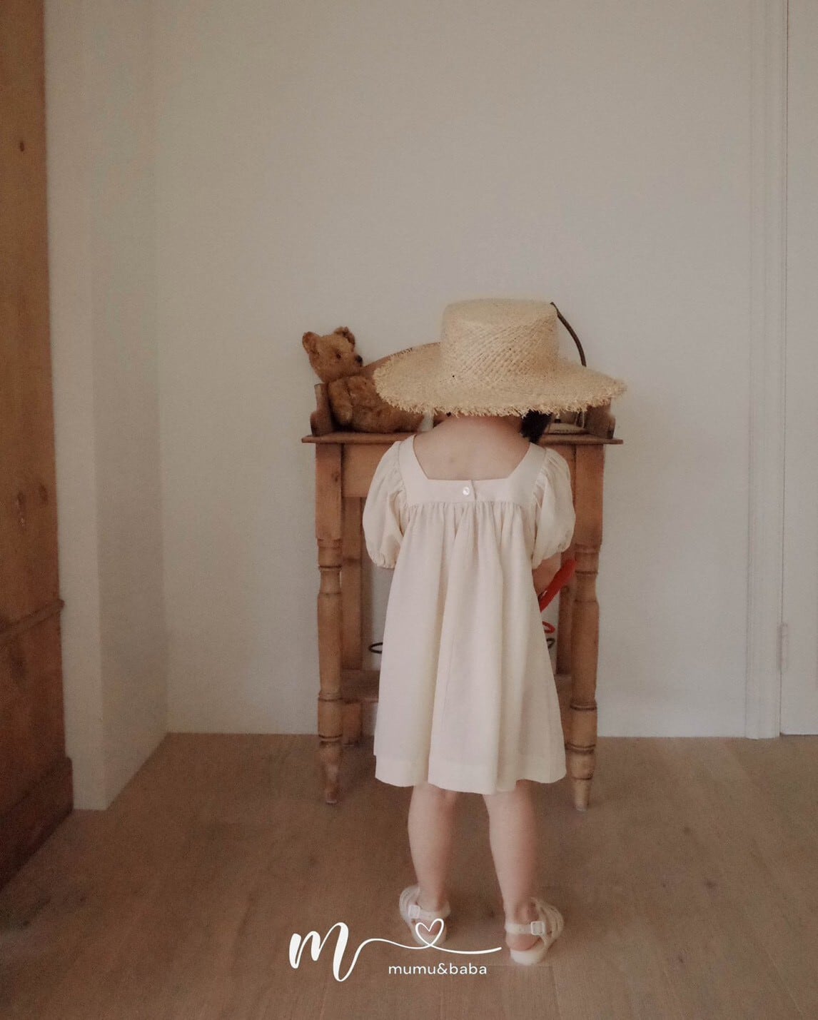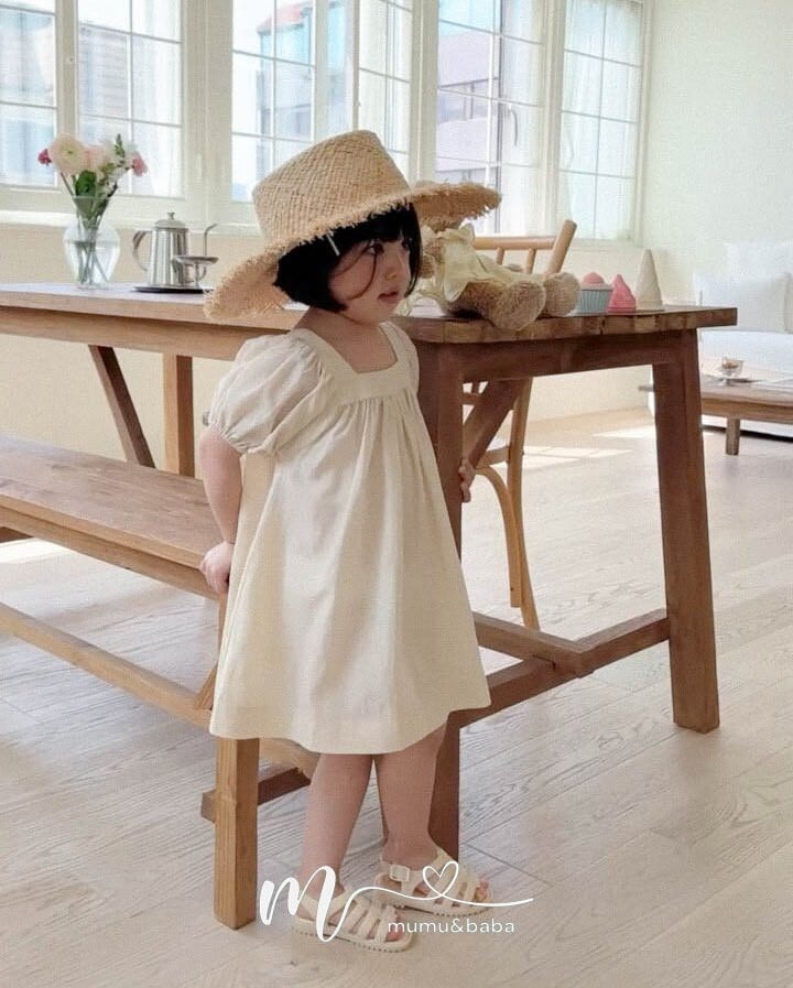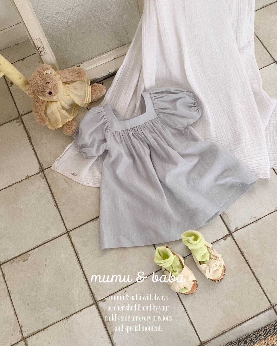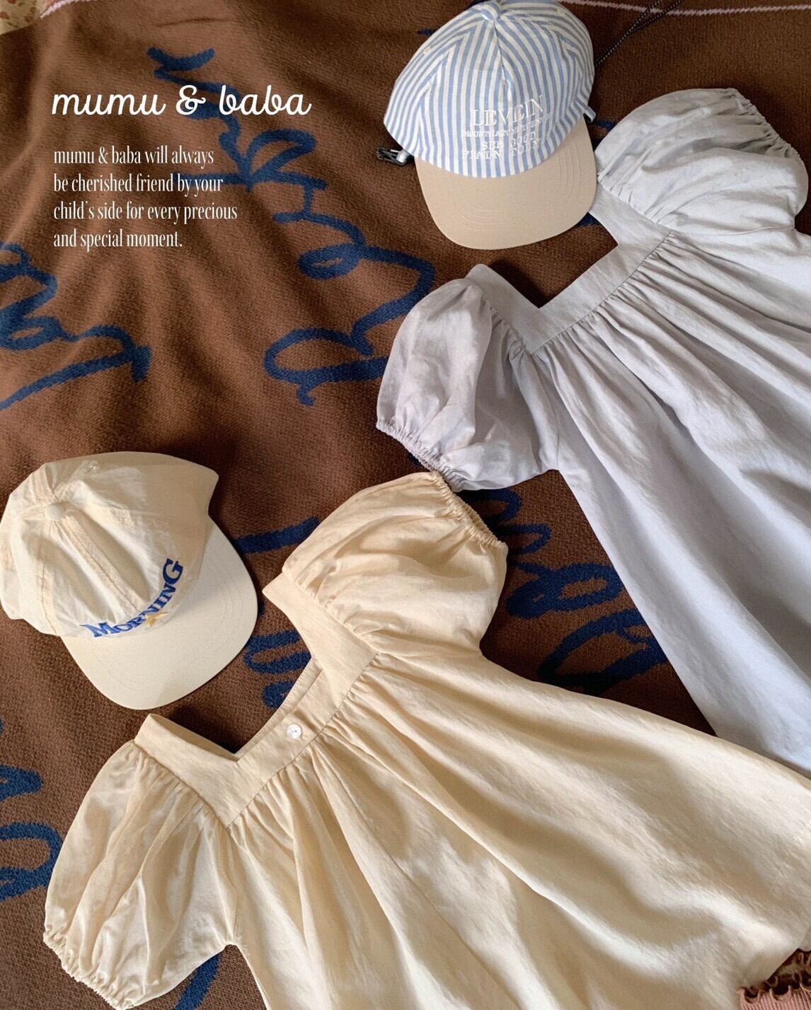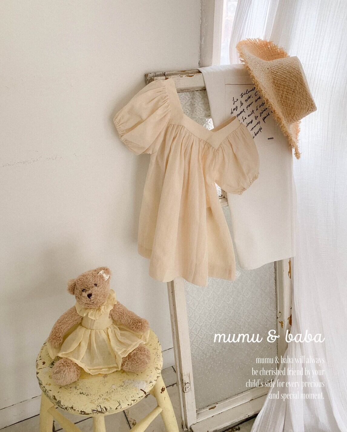 [予約] mumu&baba - square one-piece ( blue / light beige )