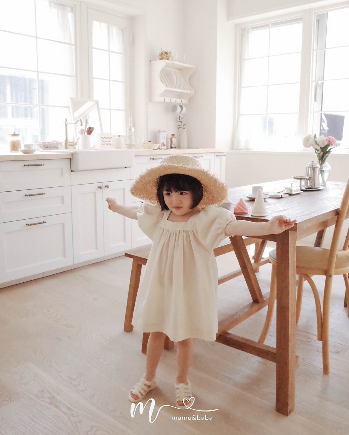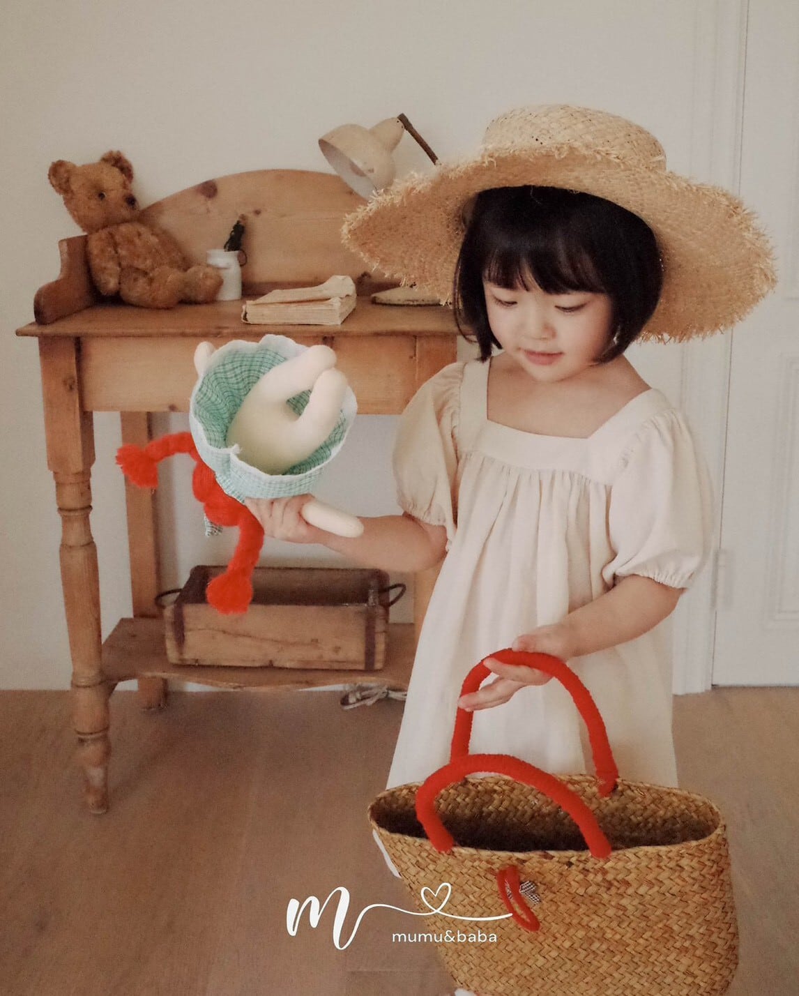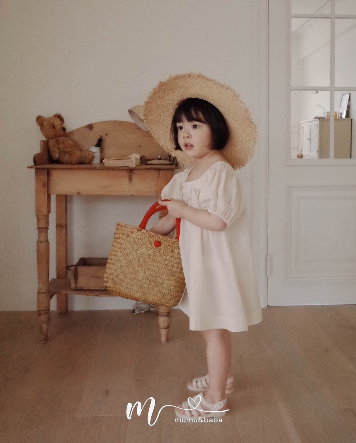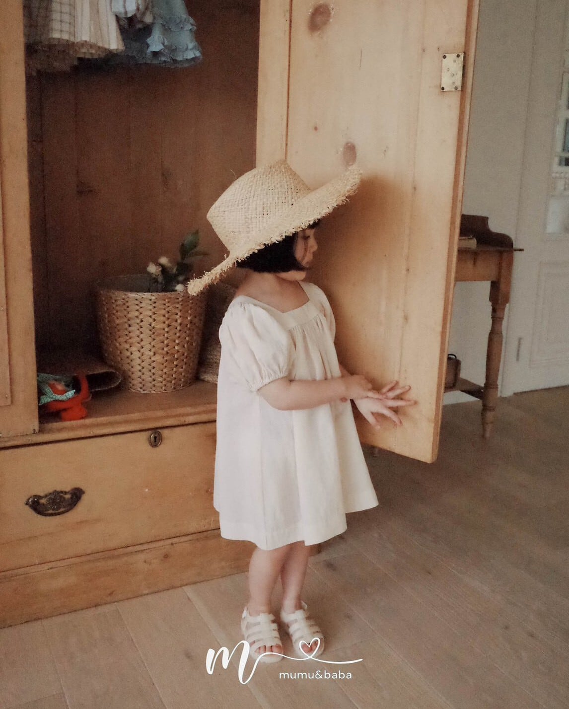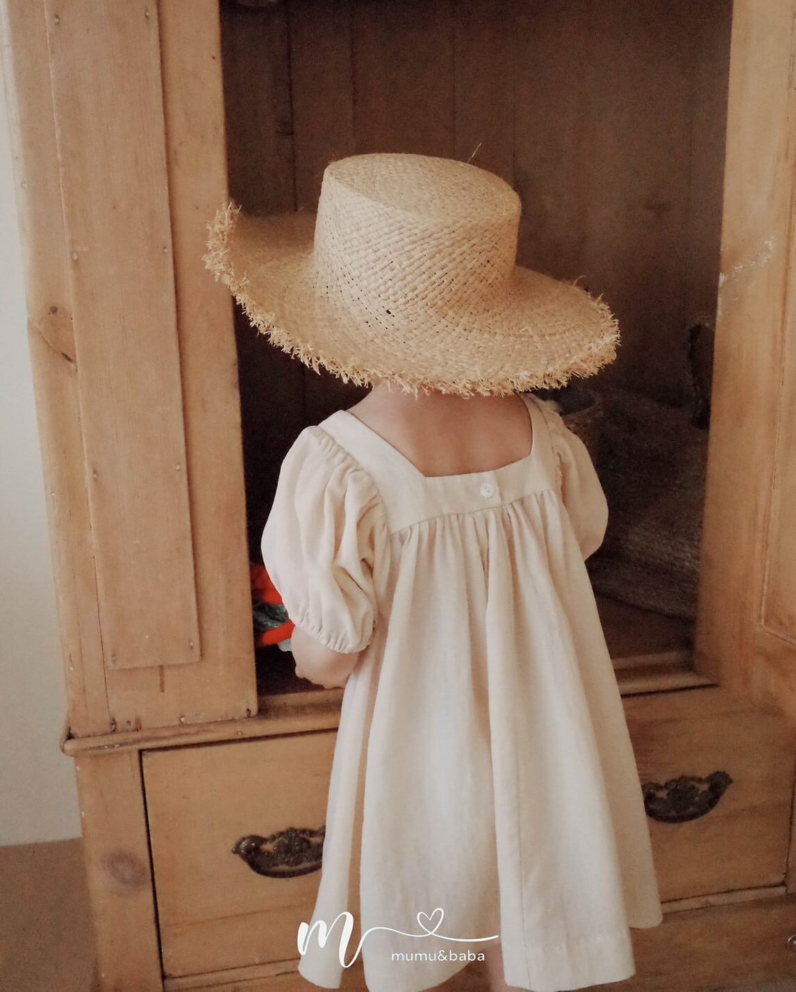 [予約] mumu&baba - square one-piece ( blue / light beige )