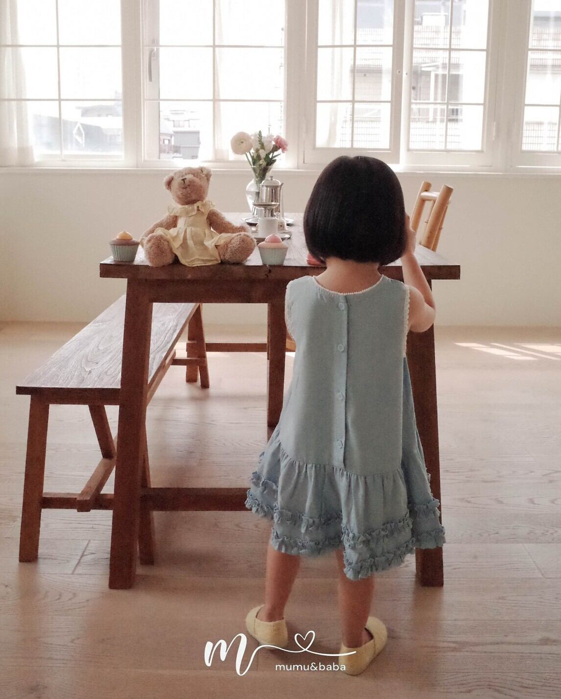 [予約] mumu&baba - kitsch one-piece ( blue / charcoal )