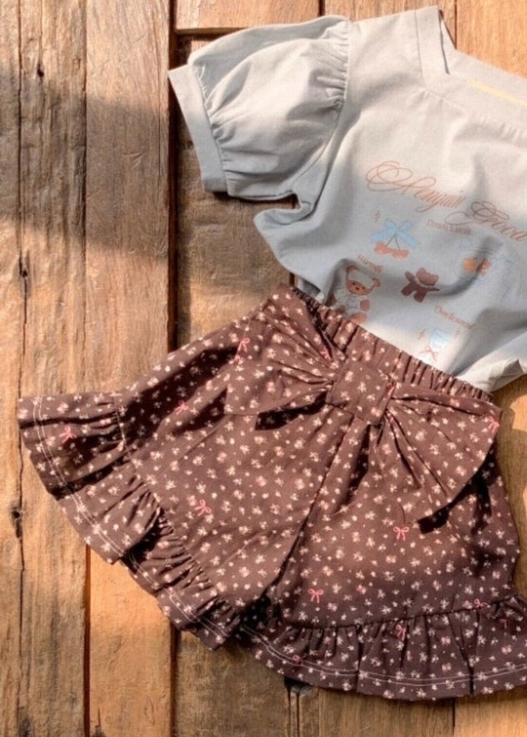 [予約] mumu&baba - ribbon pants ( brown / denim )