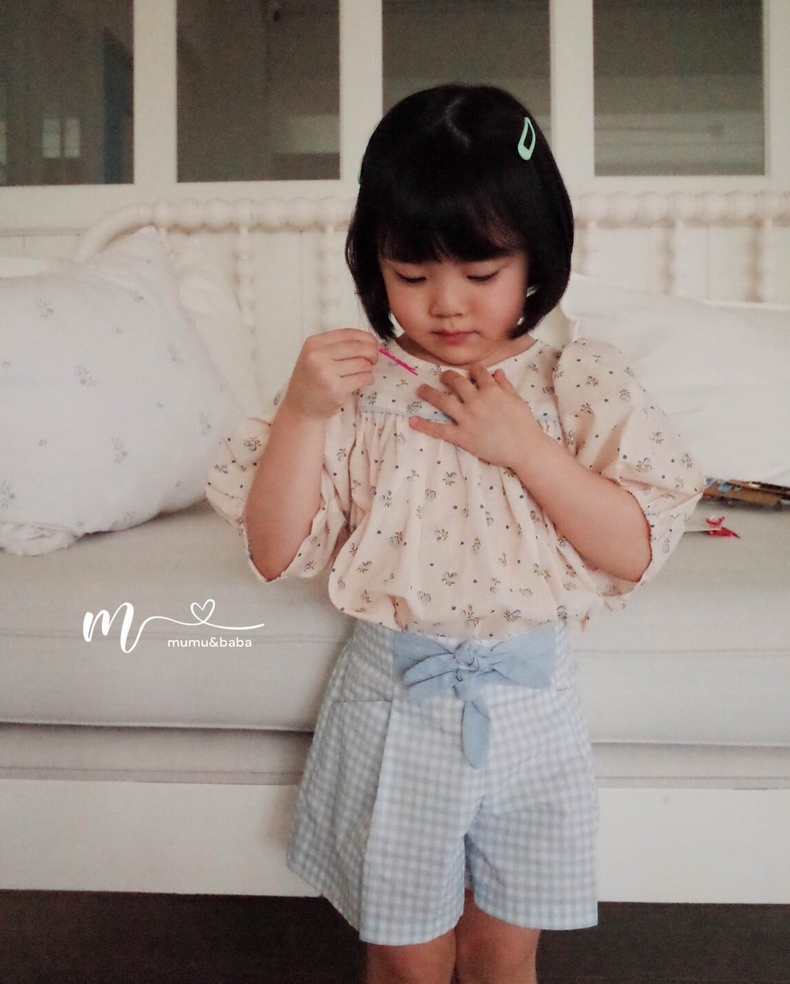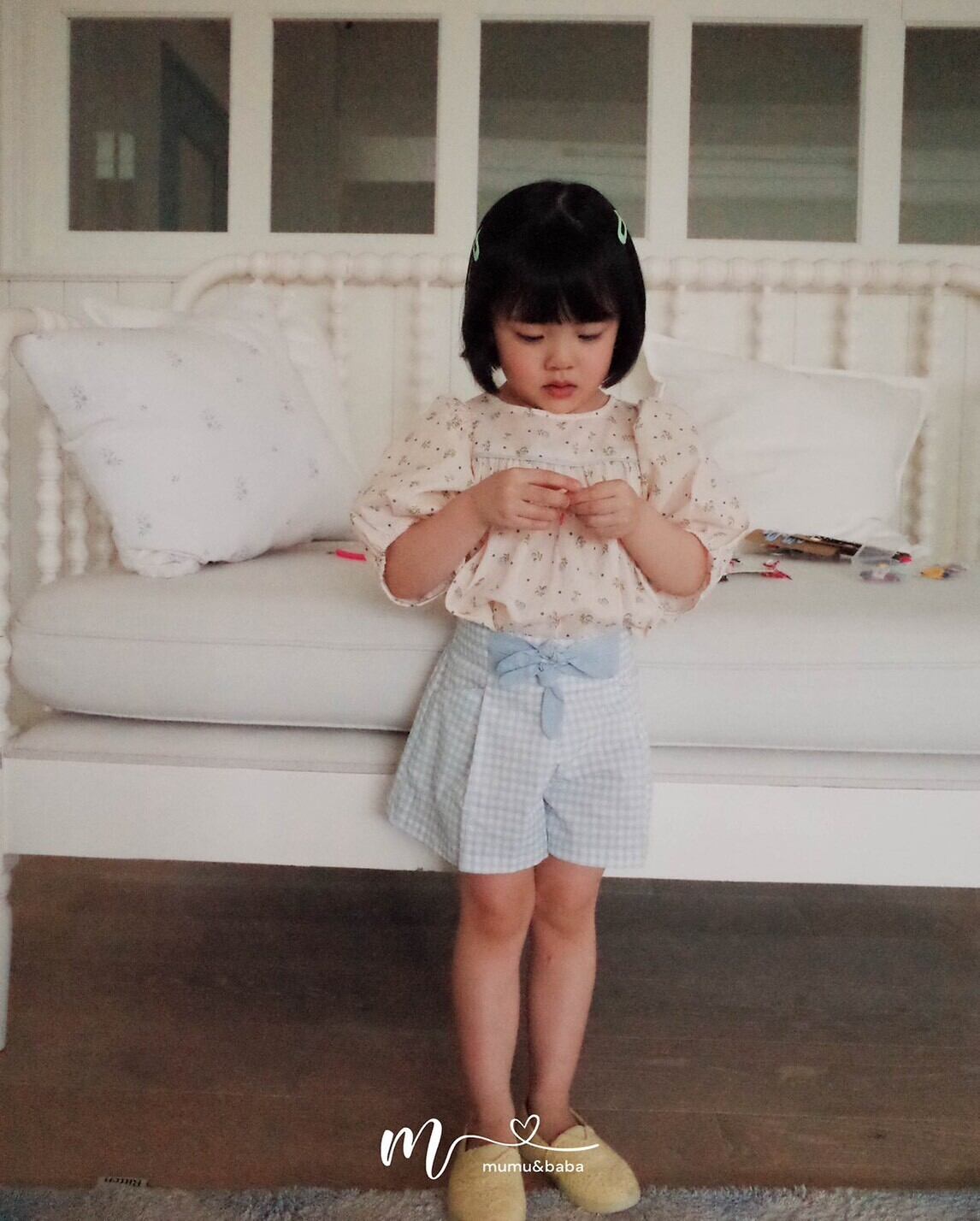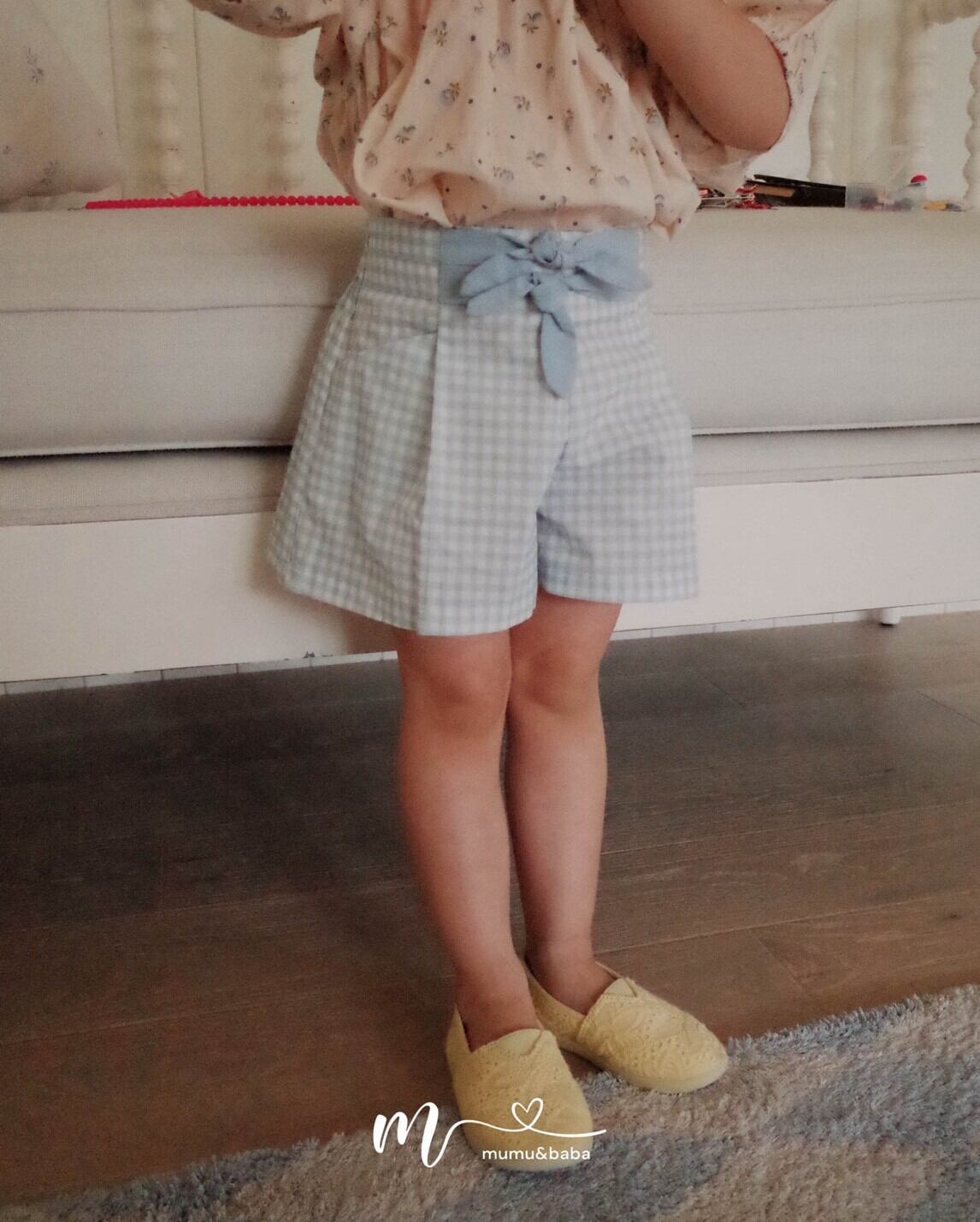 [予約] mumu&baba - check pants ( green / blue )