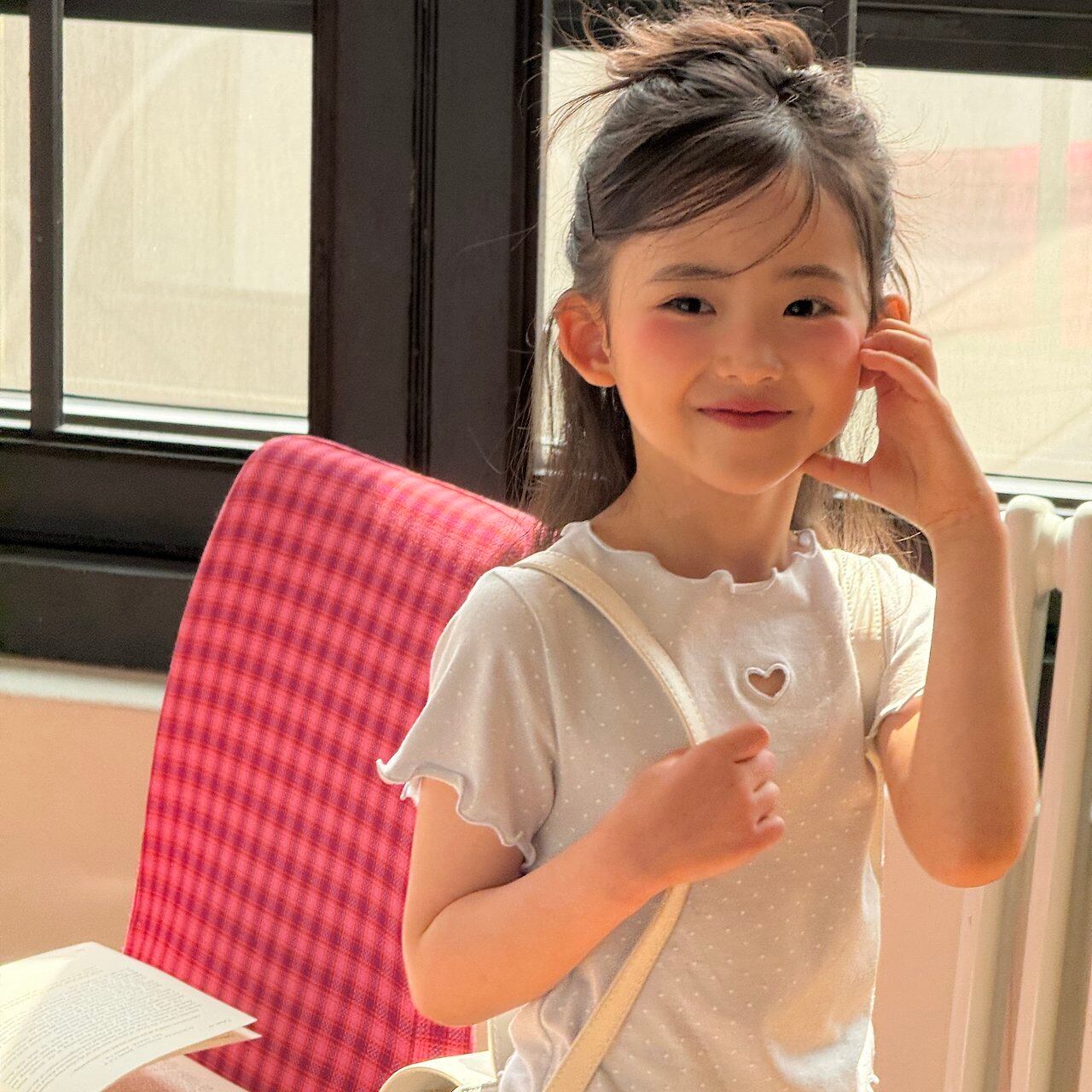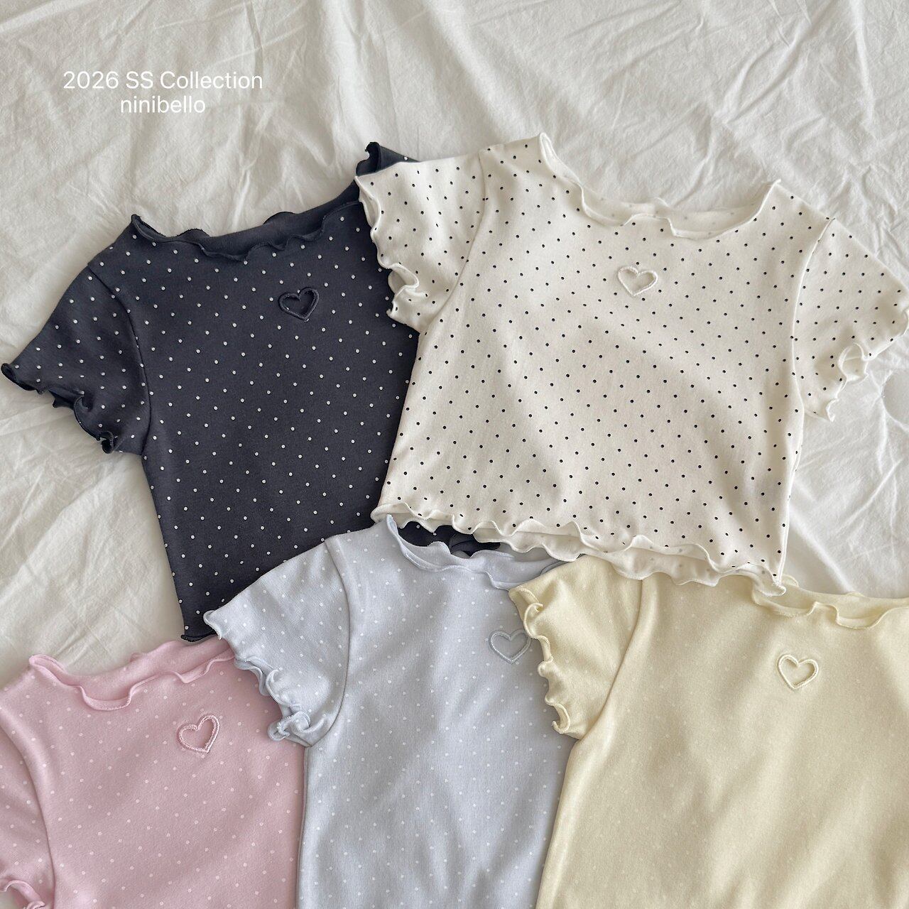 [予約] ninibello - dot heart punching T-shirt ( ivory / pink / yellow / sora / charcoal )