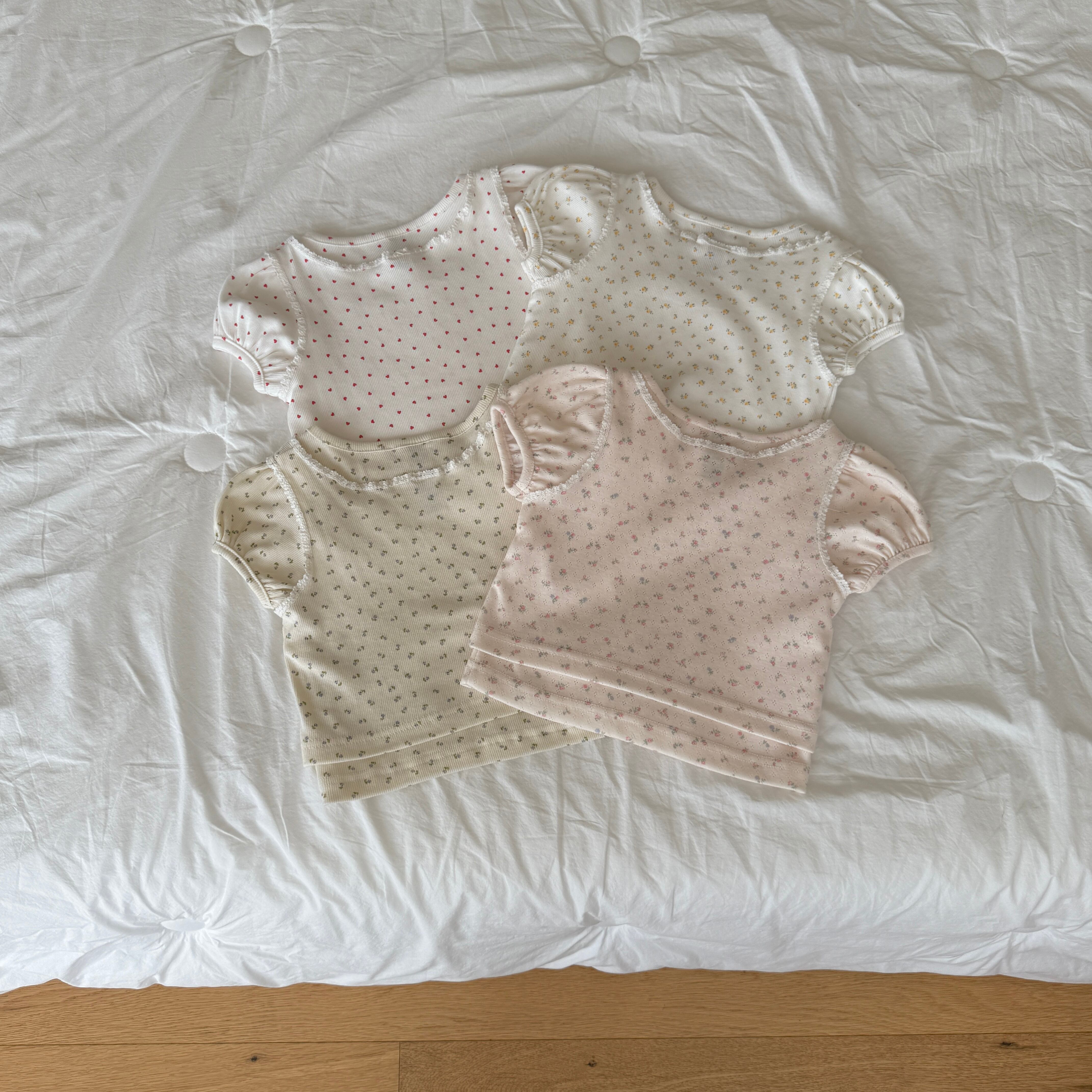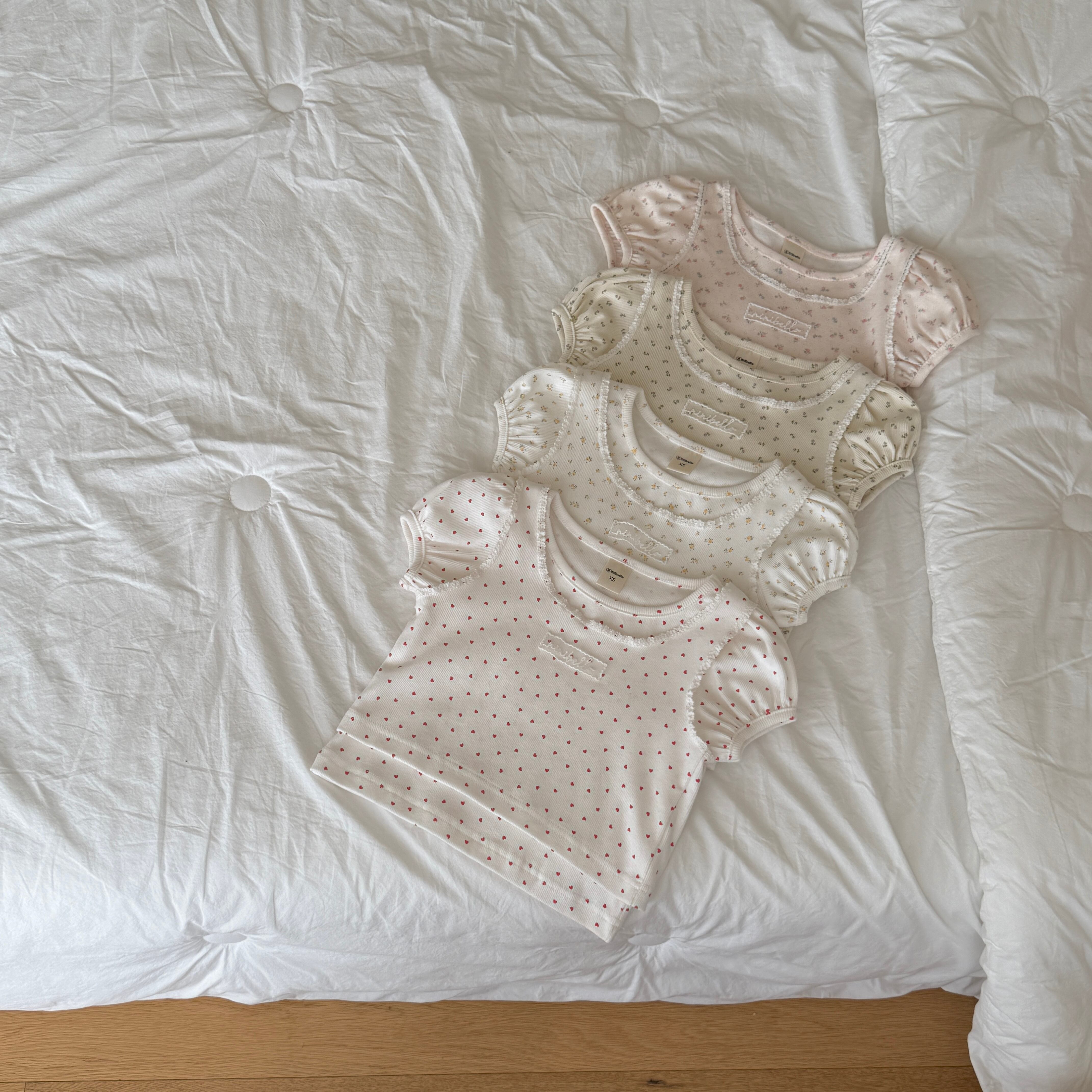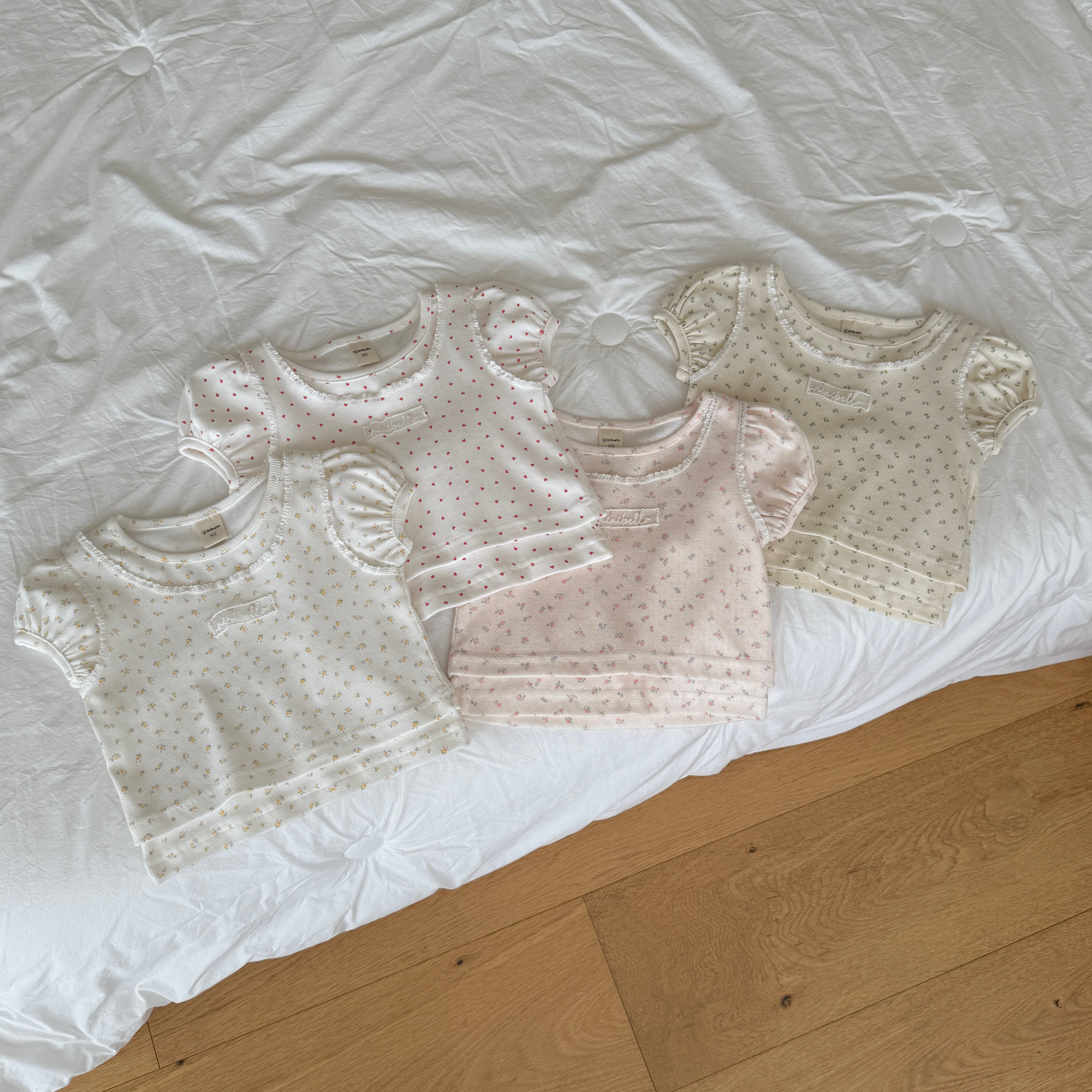 [予約] ninibello - sophie layered T-shirt ( heart / yellow flower / pink flower / blue flower )