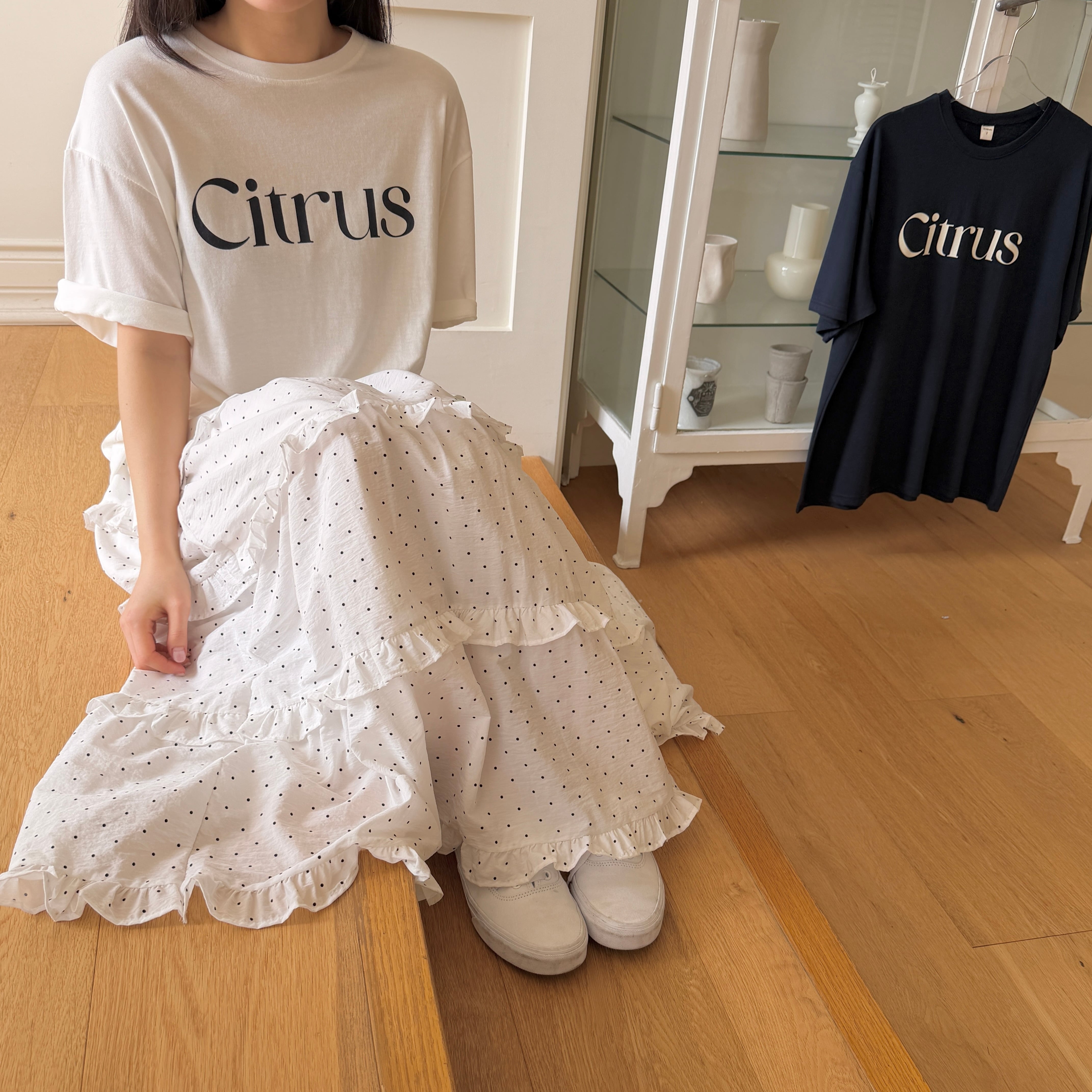 [予約] ninibello - adult peony tiered skirt ( sora / dot / plain ivory )