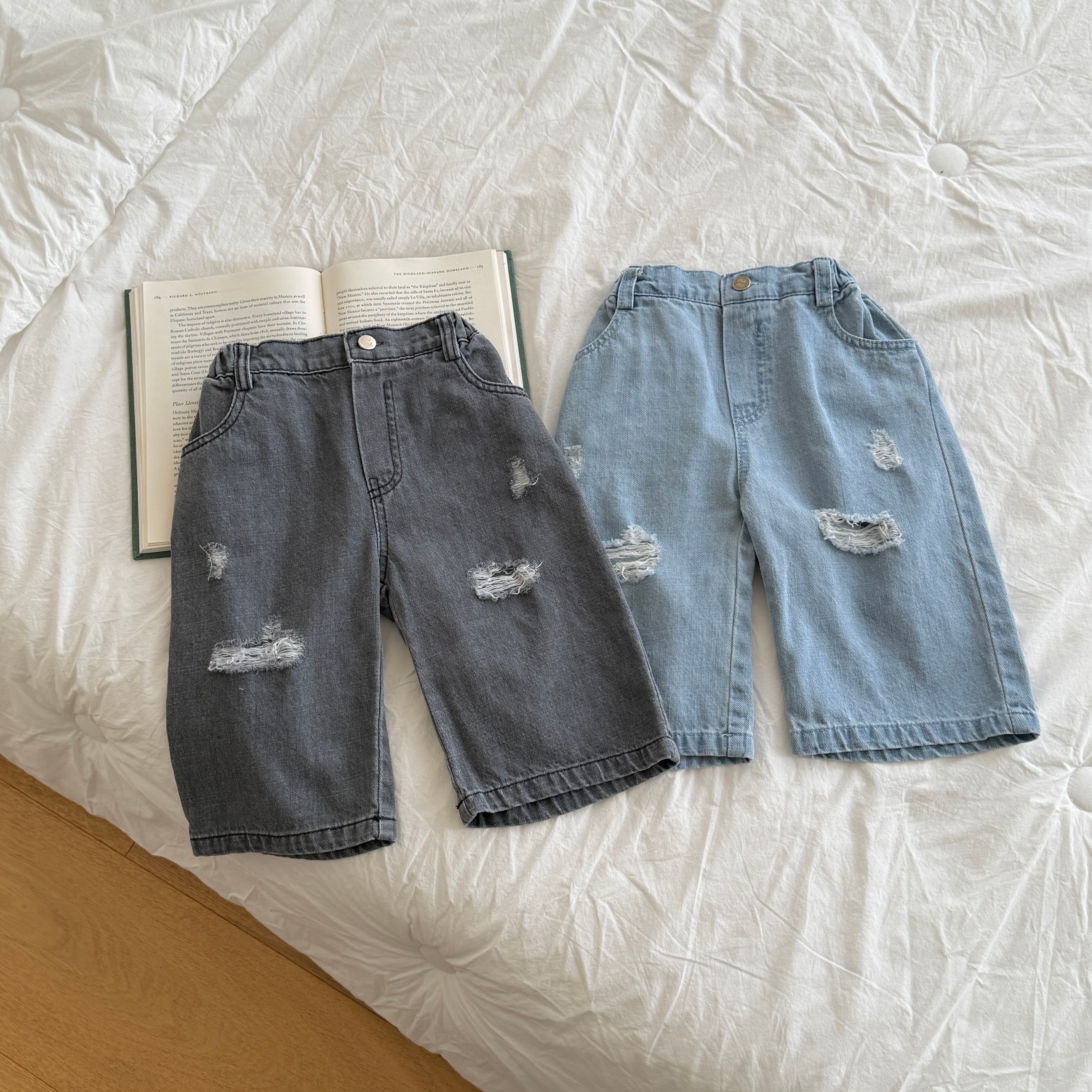 [予約] ninibello - damage ice denim pants ( light / dark )