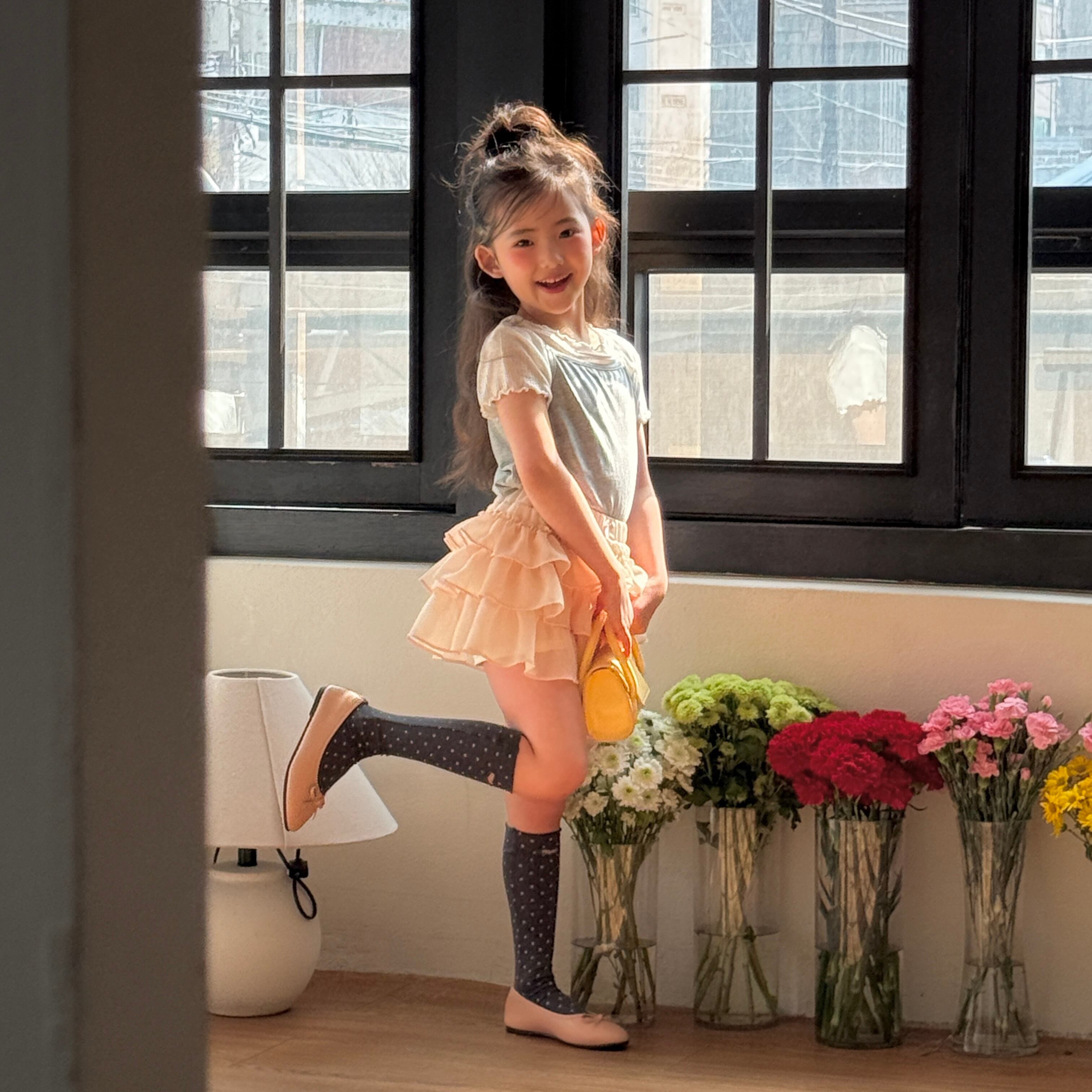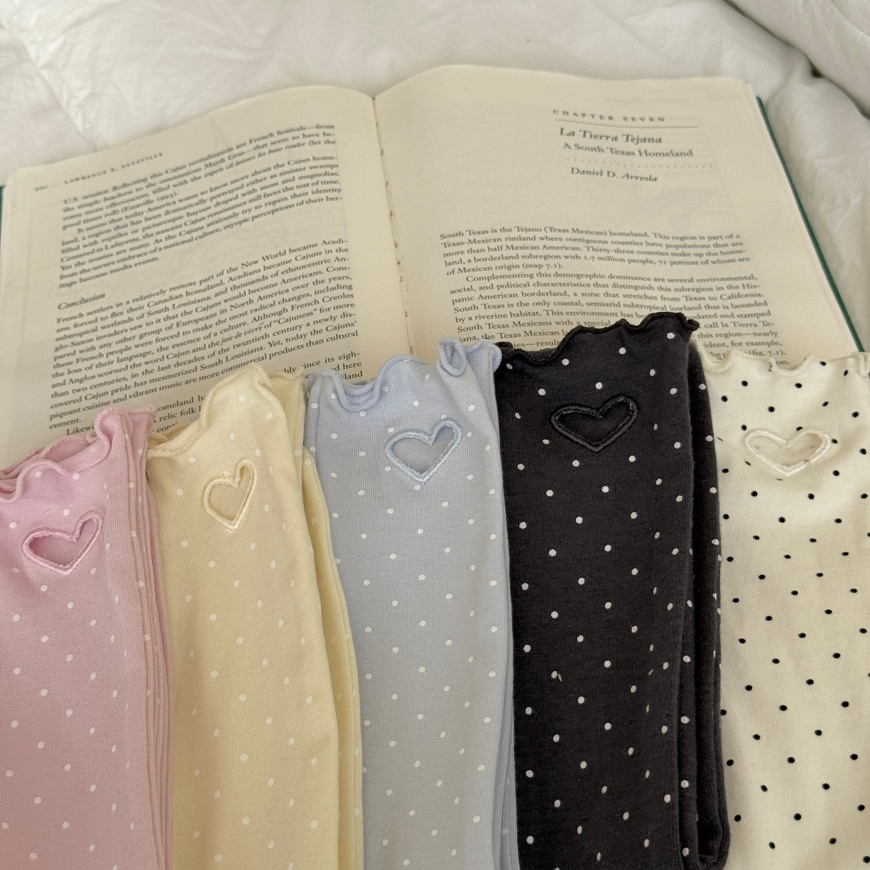 [予約] ninibello - dot heart punching knee socks ( ivory / pink / yellow / sora / charcoal )