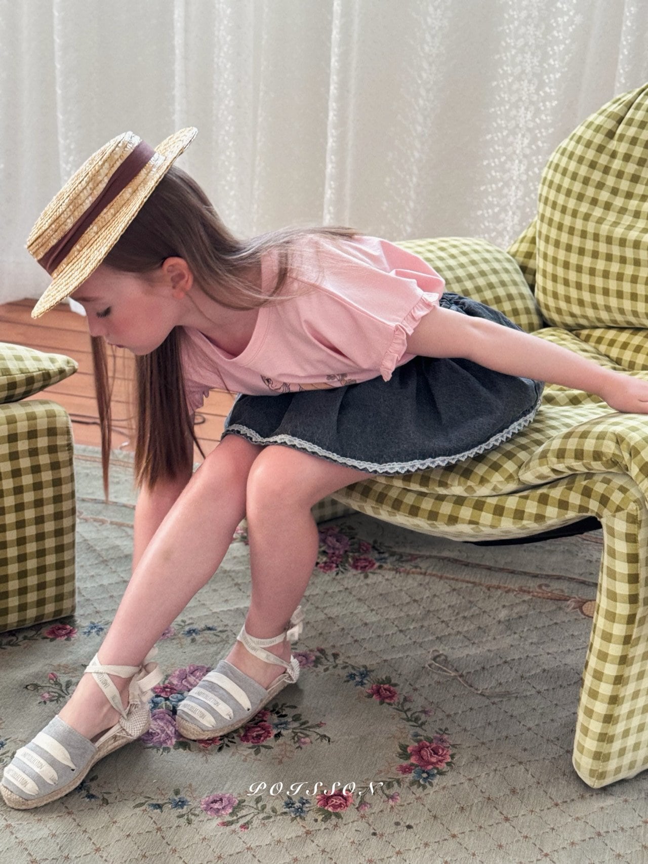 [予約] POISSON - black denim skirt pants