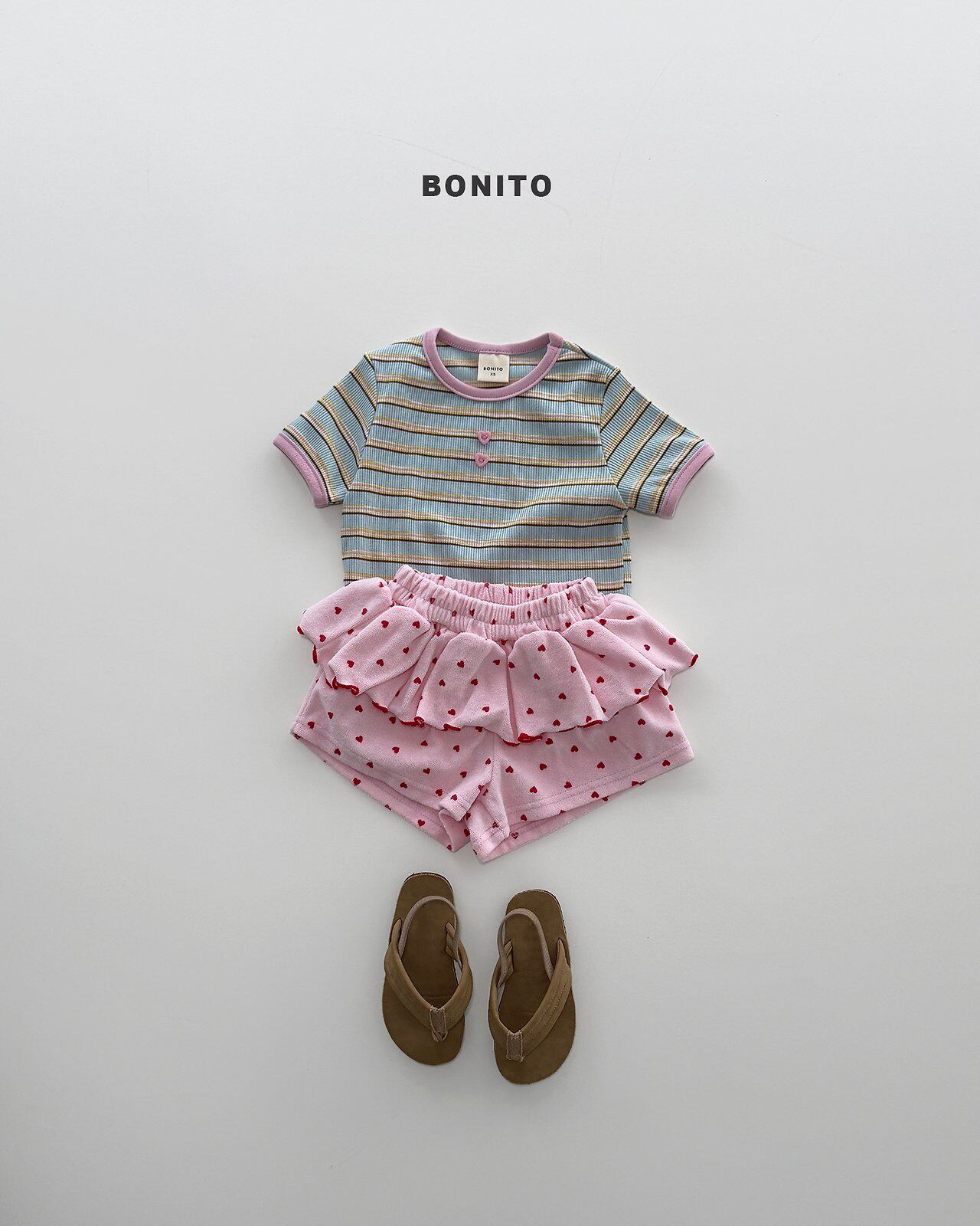 [予約] BONITO - stripe rib T-shirt ( sora / brown )