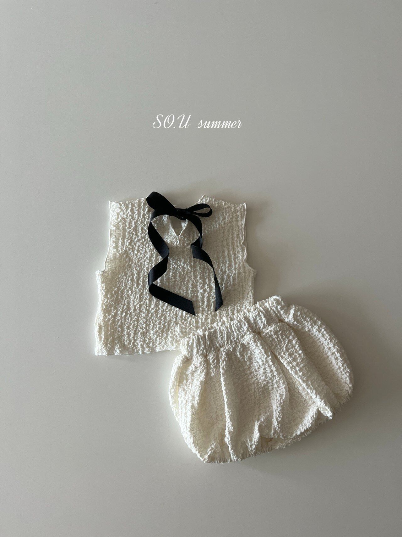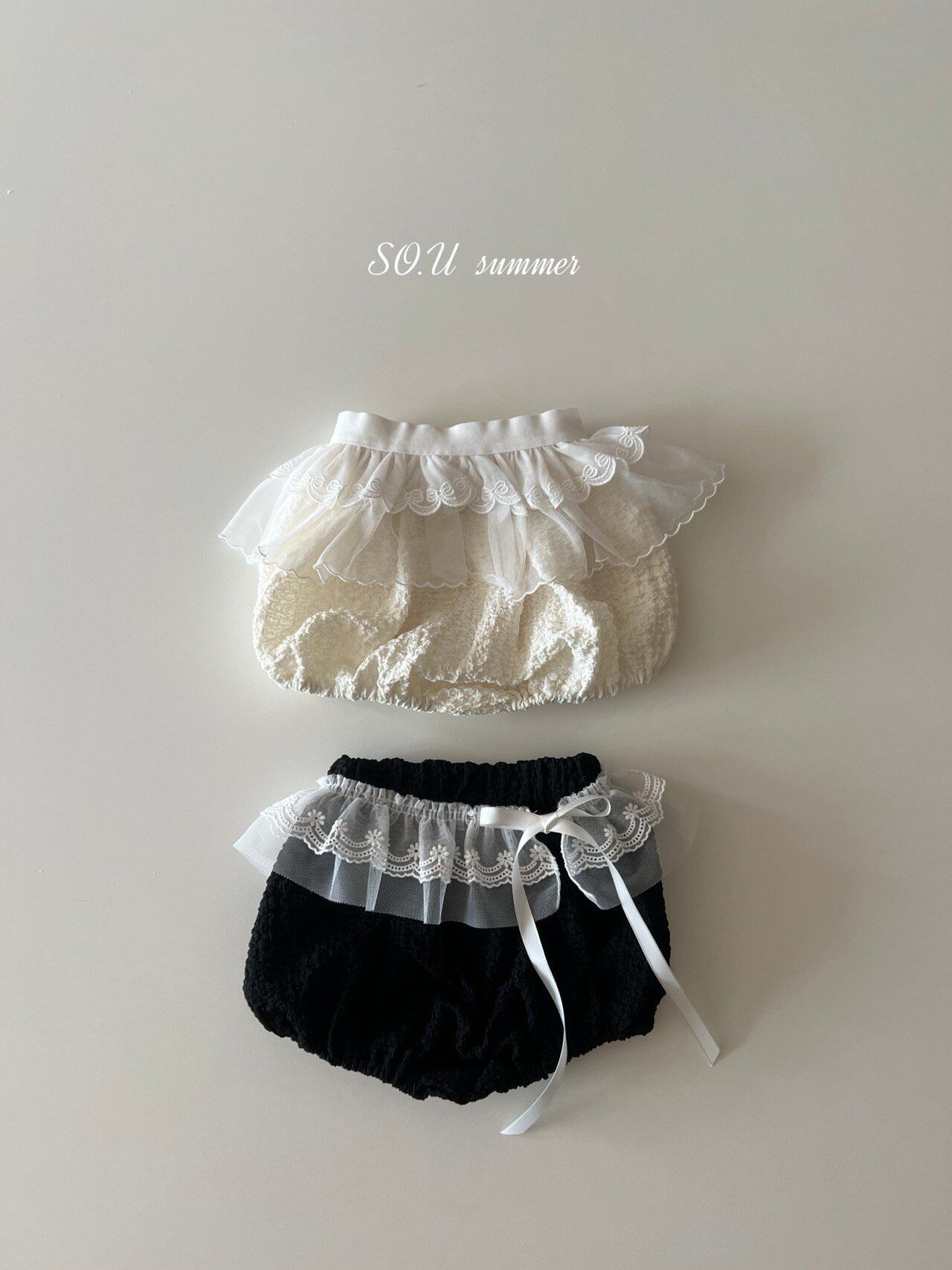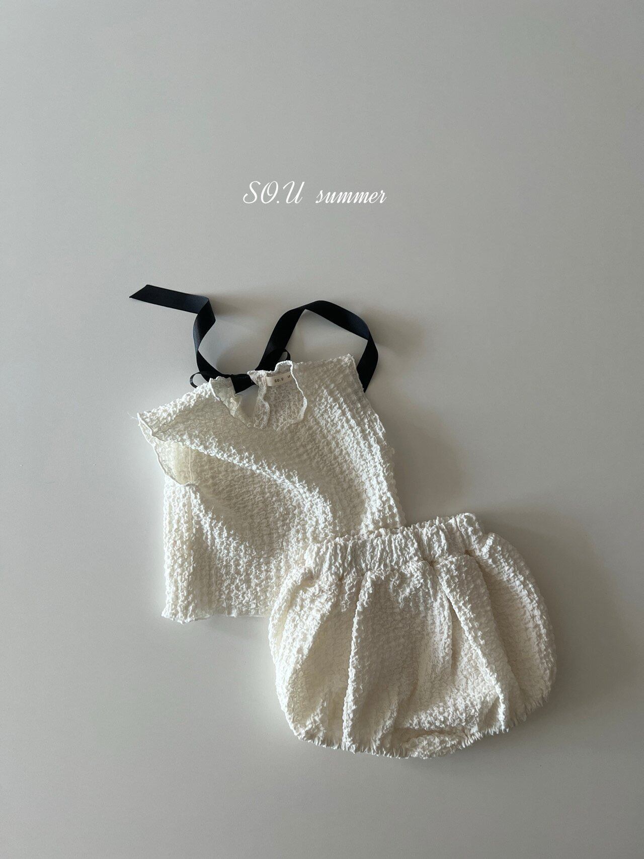 [予約] SO.U - wrinkle bloomer set ( ivory / black )( bebe only )