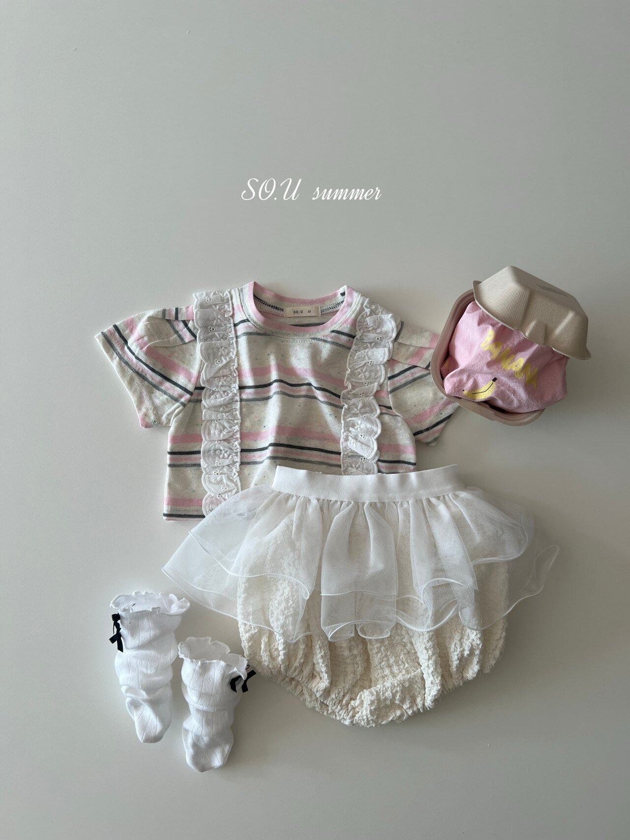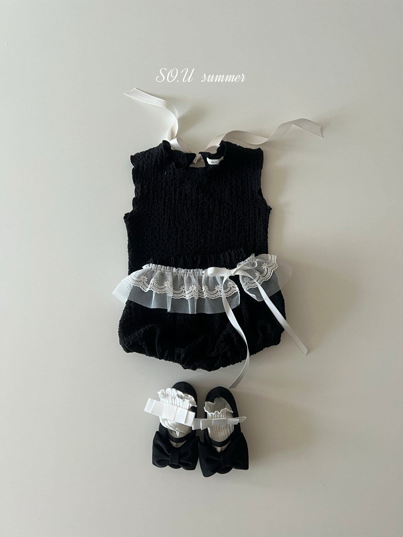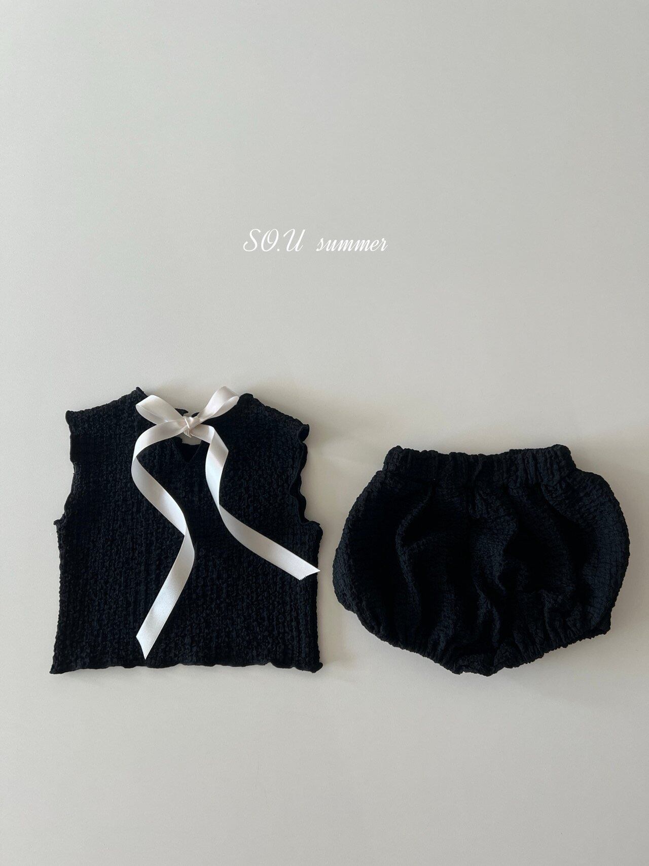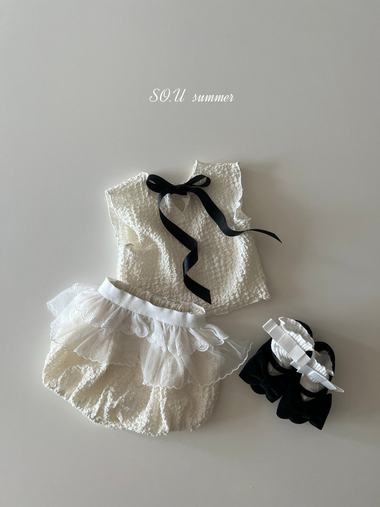 [予約] SO.U - wrinkle bloomer set ( ivory / black )( bebe only )