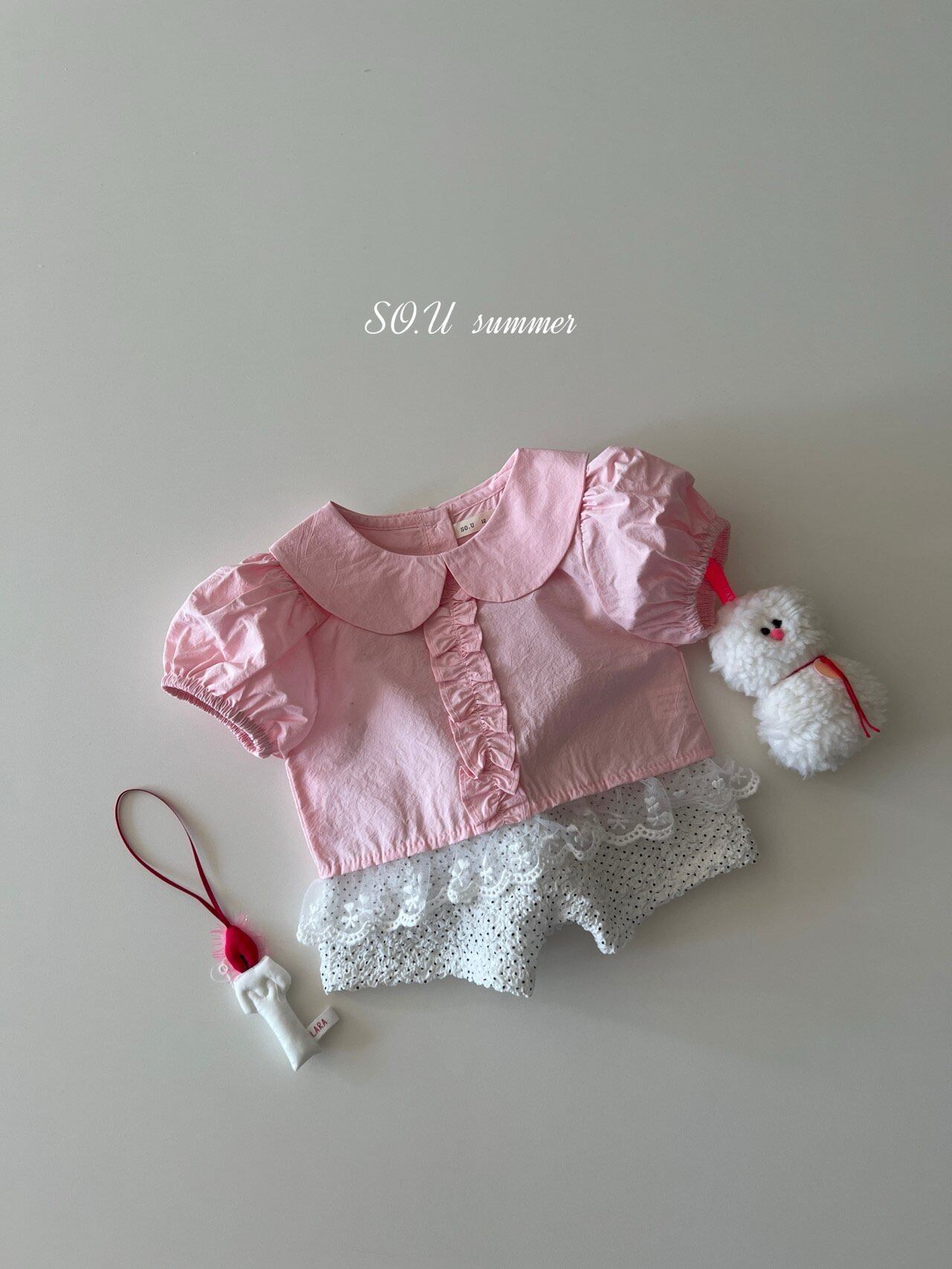 [予約] SO.U - gopchang blouse ( ivory / pink )