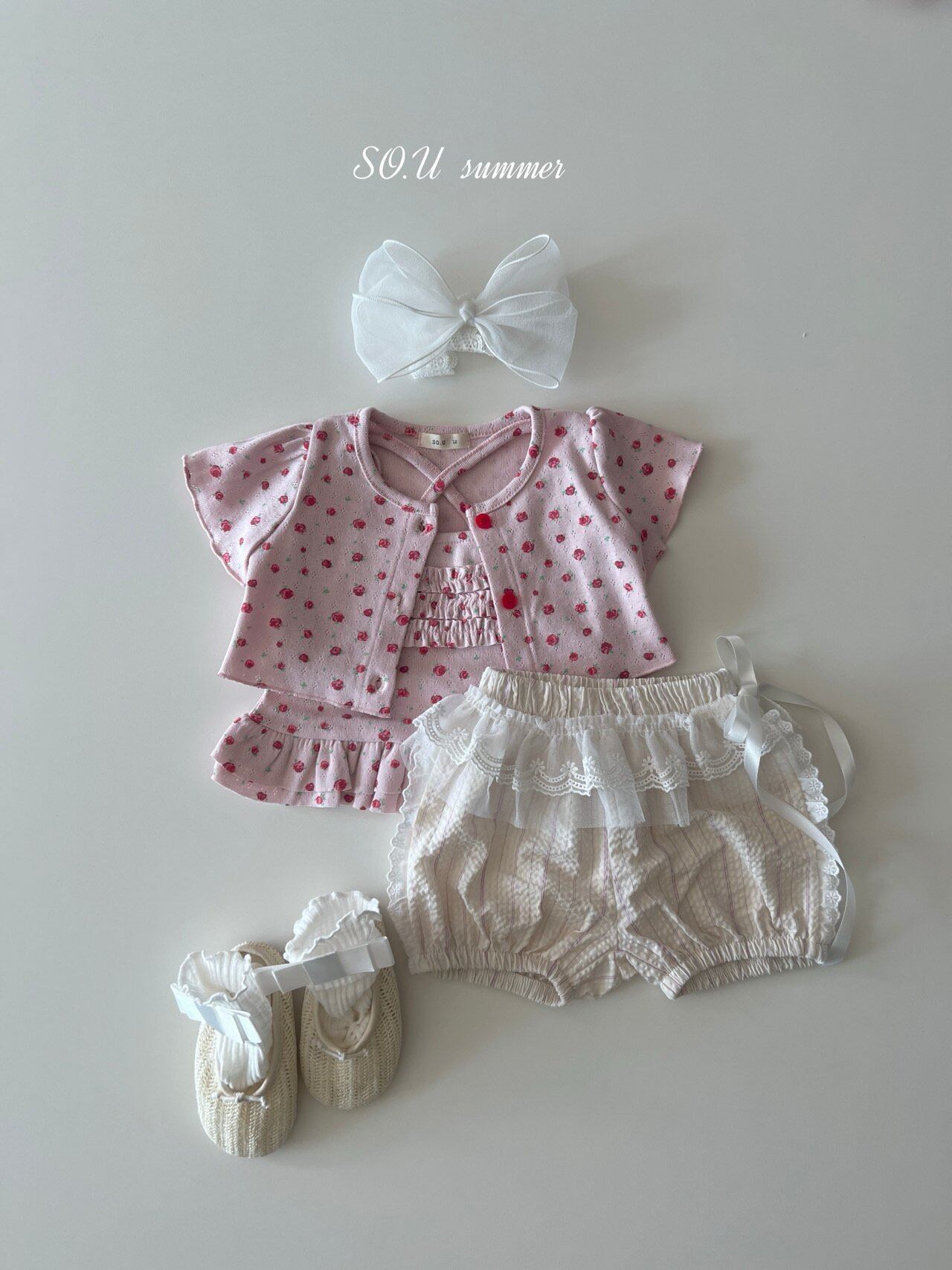 [予約] SO.U - rose narari cardigan ( ivory / pink )